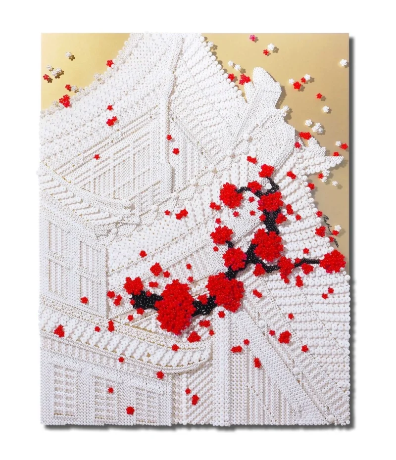Baldock’s immersive installation is centered around eighty-four wall-based clay masks and brings his “blend of craft, humour and joy” to India Mahdavi’s luminous interiors