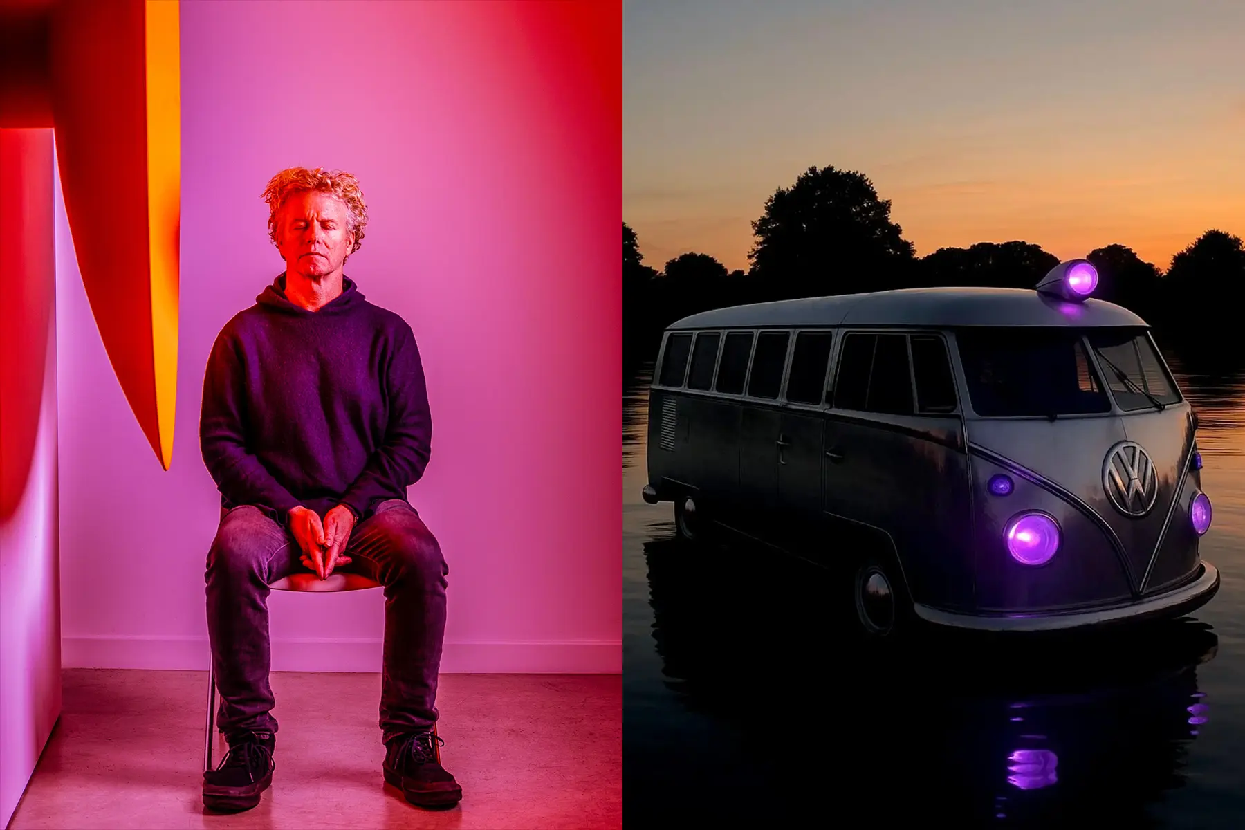 Levine (above left) - who had a solo exhibition at Houghton Hall in 2021 - returns for the Festival with three pieces, including a laser beam that will stretch across the entire site, working with Ley lines and cosmic geometry to connect visitors to the surroundings. He has also created tiny poetic “moments” that will be projected fleetingly throughout the woods, and will debut an illuminated VW Campervan floating in the middle of the estate’s lake (above right), to provide a kinetic light sculpture at the heart of everything.