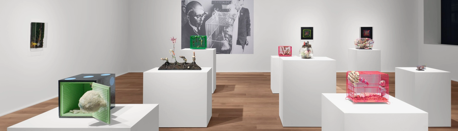 new sculptures, recent paintings, and drawings by the artist - “site-specific reconfigurations open up narrative portals, where the various media are combined with natural elements such as wind or gravity and the electromagnetic field”
