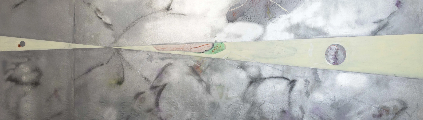 curated by Sam Hanson, the Taiwanese artist’s first solo exhibition in the UK explores “deterrence and disruption through large, ambiguous compositions with intersecting lines, scratched surfaces, and sculptural urban forms”