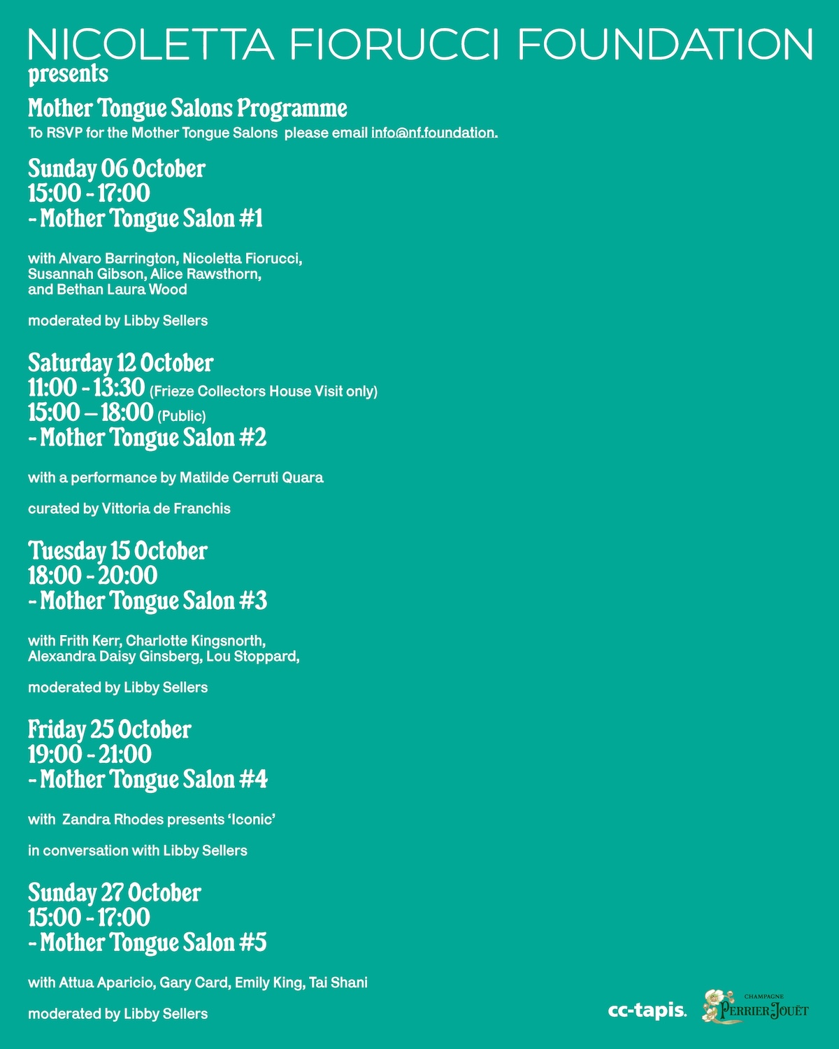 The Salons all take place at the Nicoletta Fiorucci Foundation on Chelsea Embankment and are open to everyone although RSVP is essential.
