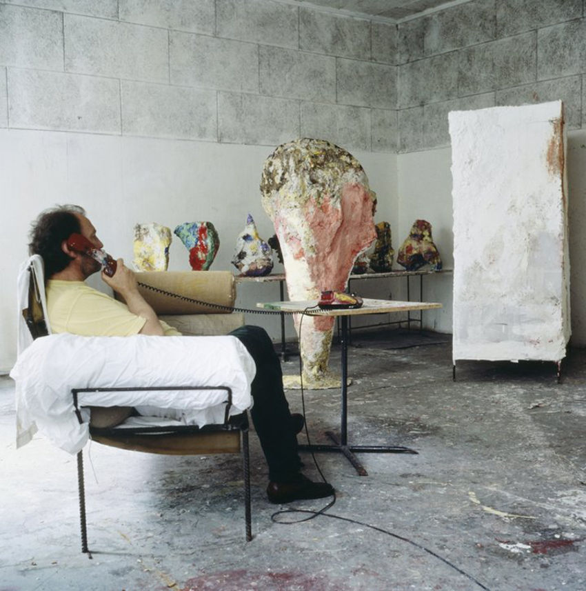 From the very beginning and in contrast to his peers, Franz West declared his allegiance to sculpture and was committed to the importance of physically creating a work of art. For West, without a physical entity, the ability to engage the viewer and form a dialogue would be lost. This exchange between viewer and artwork is paramount, be-it through touch or interpretation, dialogue lies at the foundation of Franz West’s practice. His innovative use of materials, form, colour and language, blurred the lines between sculpture, installation and furniture. As a result, West created new archetypes for sculpture that allowed the viewer to intervene and interact. His sculptures captivate us because, although they are inherently ambivalent, they provide small glimpses of recognisable shapes, hidden in the contours of the work. He taunts our instant re ex to identify and contextualise what is in front of us, highlighting the psychological need to understand and dispel the abstract. This, in turn, plays an important role in opening the human psyche, as every person’s experiences are individual.