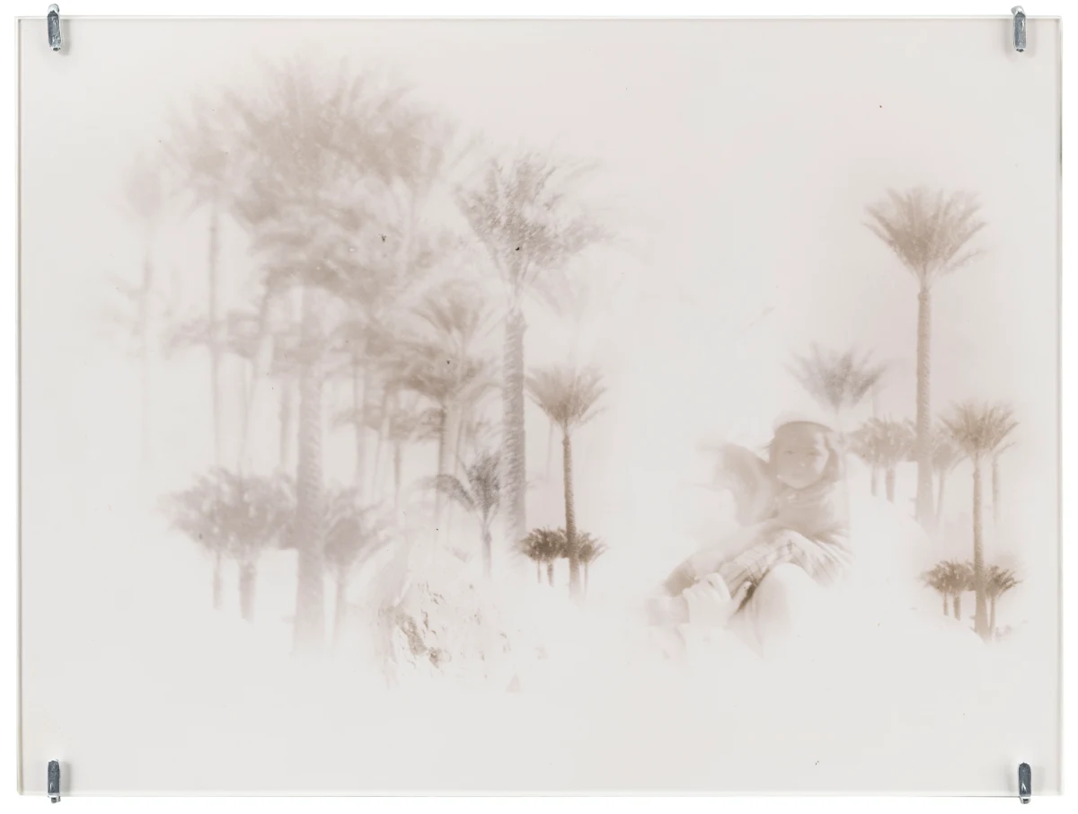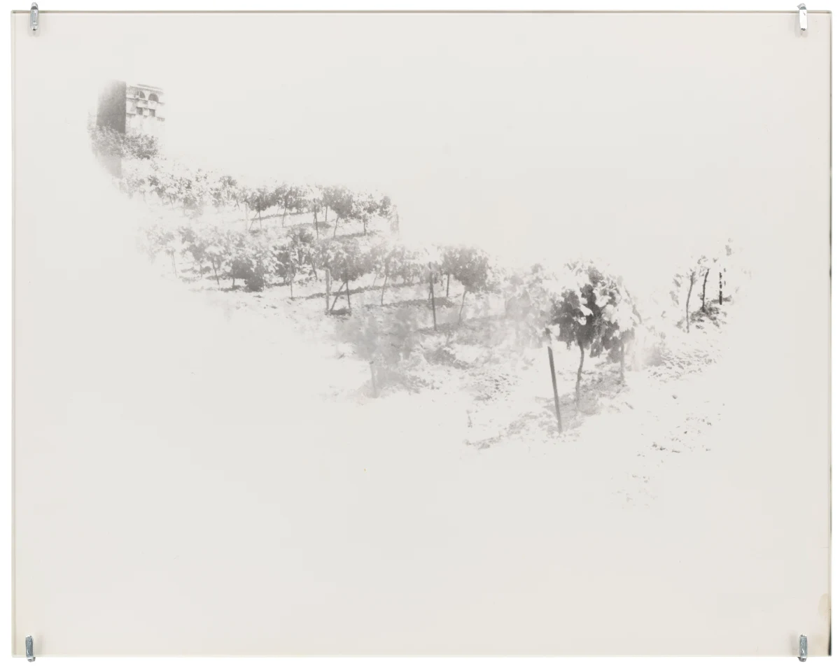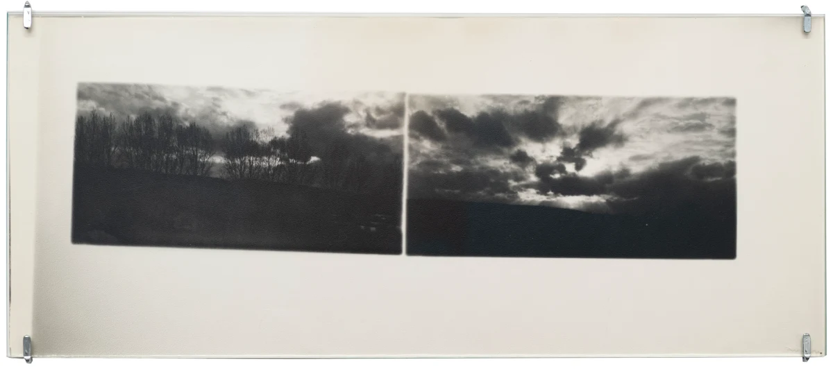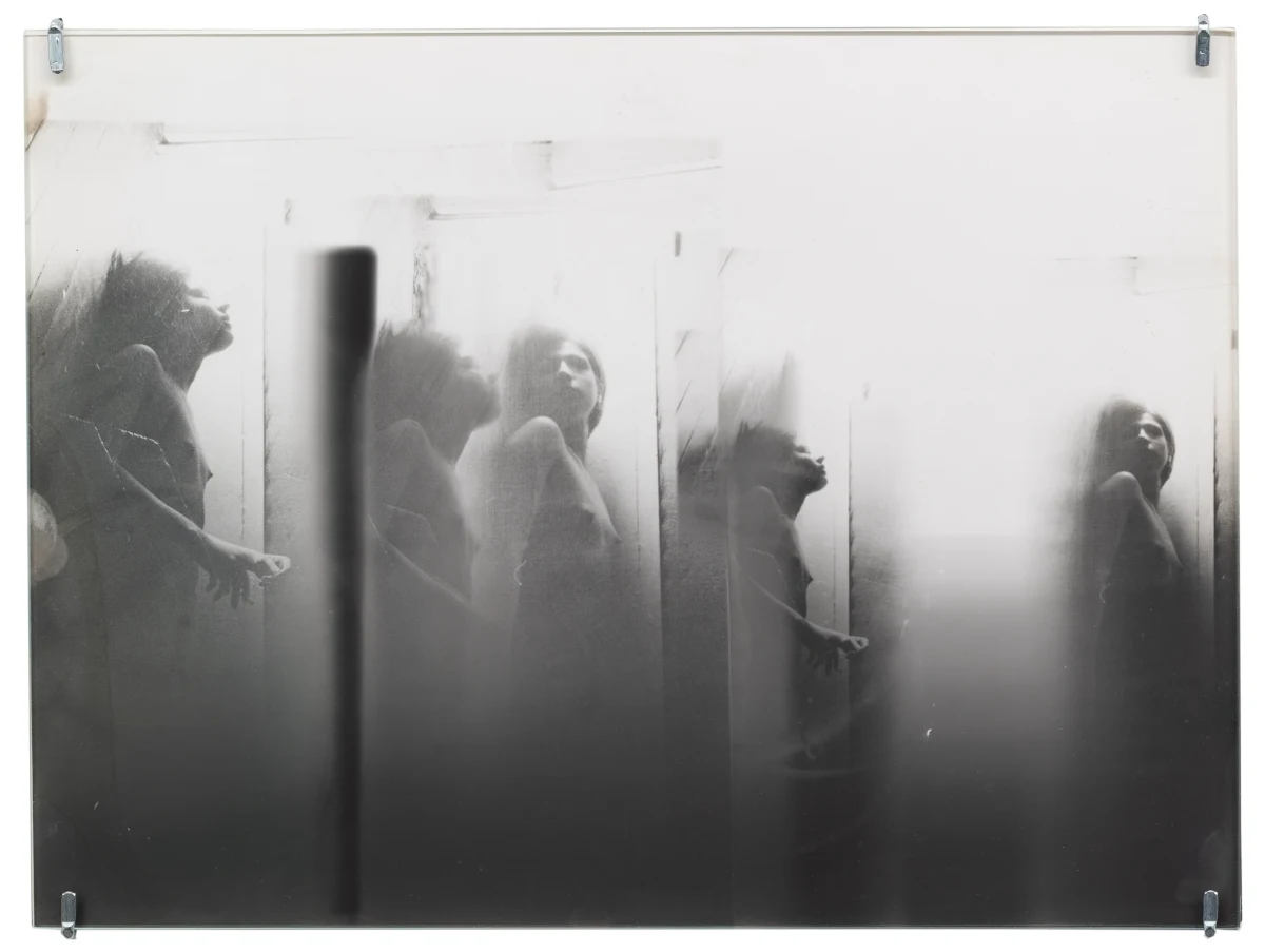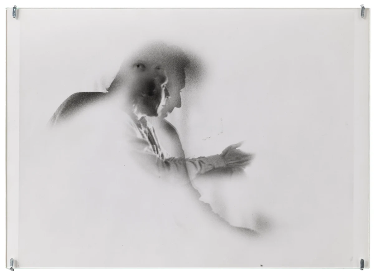 In a number of works, Roubaud made use of negatives from her parent’s photographs taken in the 1950s, printing fragments that evoke the tenuous unreliability of remembered childhood. Her 1980 series “non-contact theory” makes visible the material edges of the photographic negative, prioritizing the space between exposures, treating the medium itself as a subject and emphasizing the physical object of the photo print. A work like “untitled (Fifteen minutes at night to the rhythm of breath)” exploits a long exposure time, here taken in a cypress forest at night, with the (asthmatic, troubled) breath of the artist registering in the image’s blurred abstraction. Together with Jacques Roubaud, she produced the series “Protohaikus”, photographing his short poems as verbal propositions reimagined in visual form. Works like “Correction of perspective in my bedroom” hinge on her use of repetition, overlaying fragments from the same negatives again and again on a single print, creating a kind of photographic stutter. Of particular interest in this exhibition are works in which Roubaud incorporated fragments of writing - notes, letters, and journal entries, both handwritten and typed - layered atop figures or interior spaces. Often revealing an inner torment, the poetics of the texts she incorporated into her photography complicate and torque her often serene-seeming images. And throughout her work, her interest in self-portraiture runs alongside her portraits of friends and lovers. Beds recur as a persistent motif, with recumbent figures hovering between sleep and death, or between desire and mortality.