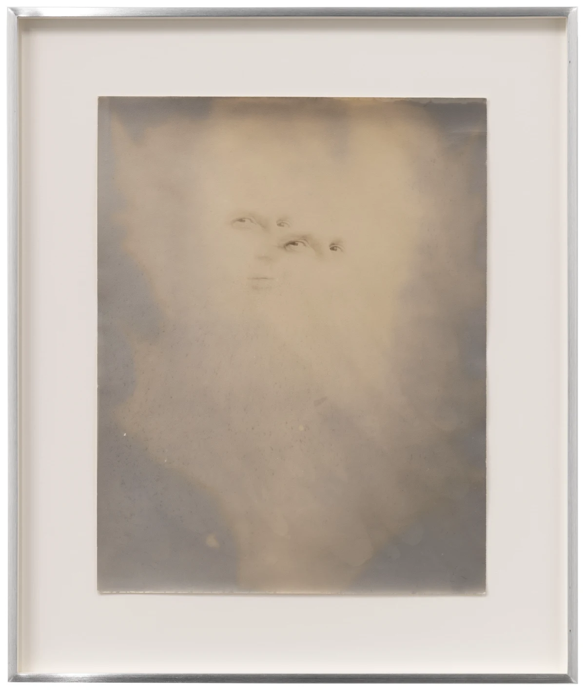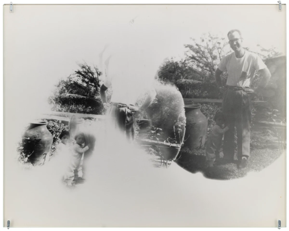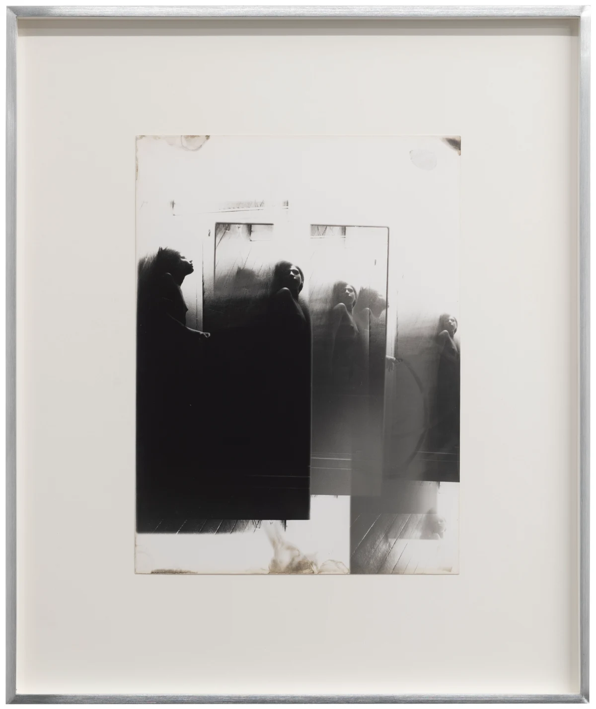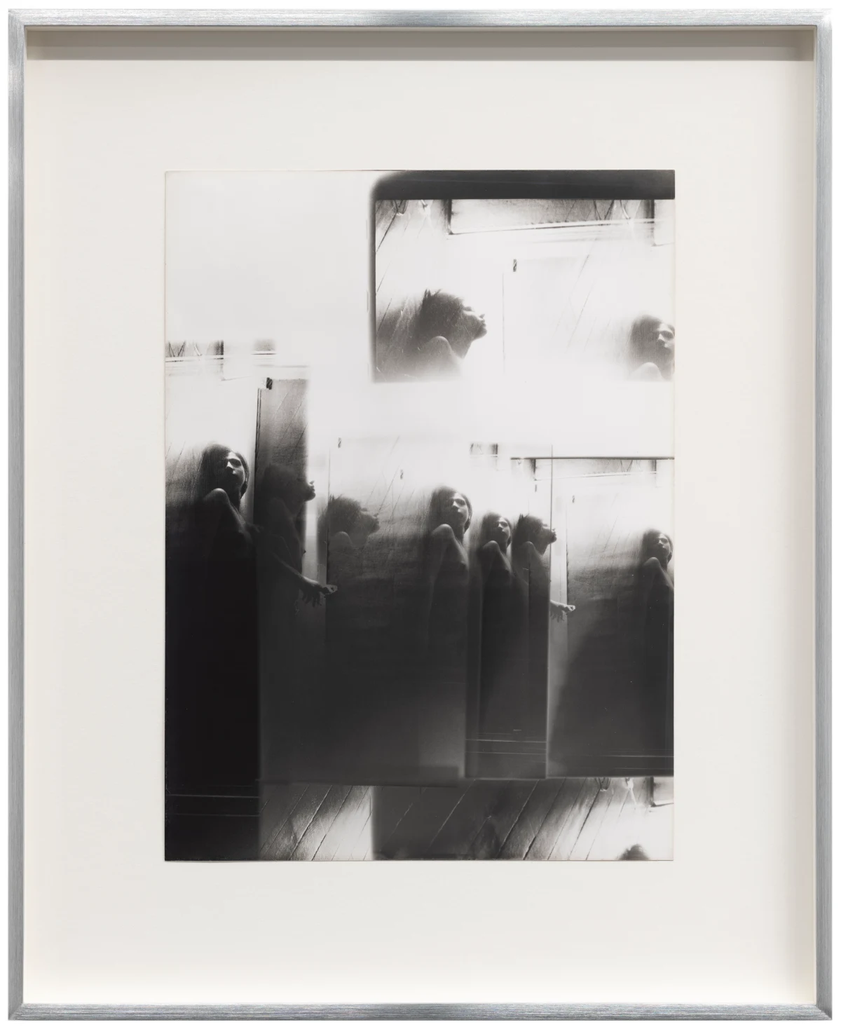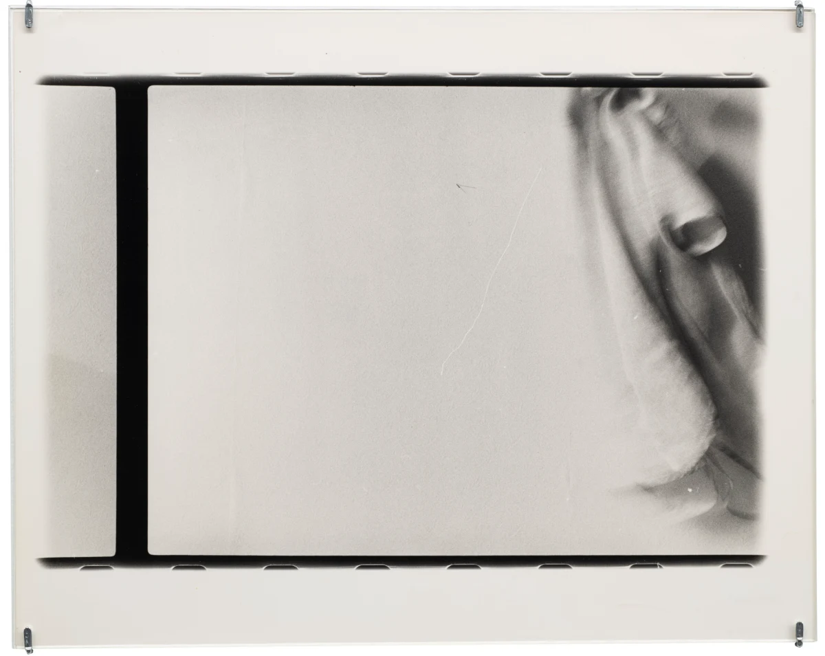 Working primarily in a bathroom darkroom in her apartment at 64 rue Vieille-du-Temple, Roubaud deployed experimental printing techniques, producing high-key prints built from multiple exposures (sometimes as many as 10 per print), abstract manipulations of light, extensive burning and dodging, the use of a light pencil, and, more rarely, colored pencil, staining, and tinting. She destroyed her negatives, writing in 1979 that “the negative should only be kept for as long as the result of processing it retains something of the living memory of the intended image.” Each print is unique.