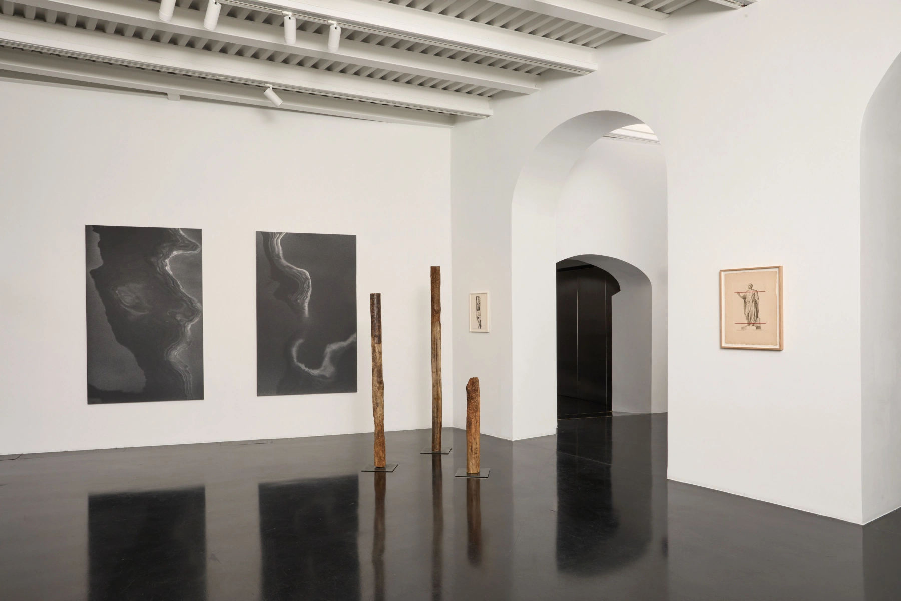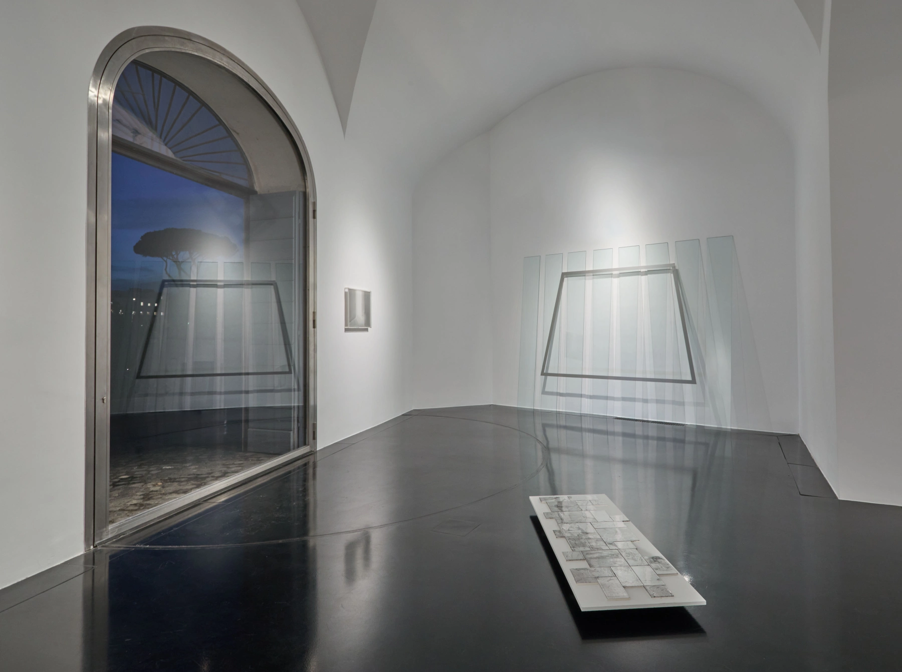 A historical installation from the 1970s, along with a drawing on mylar paper by Elyn Zimmerman, recalls how space, for her, is above all a light-based and perceptual experience. Her work, deeply connected to their material resonances, situates the artwork in a direct relationship with its environment.