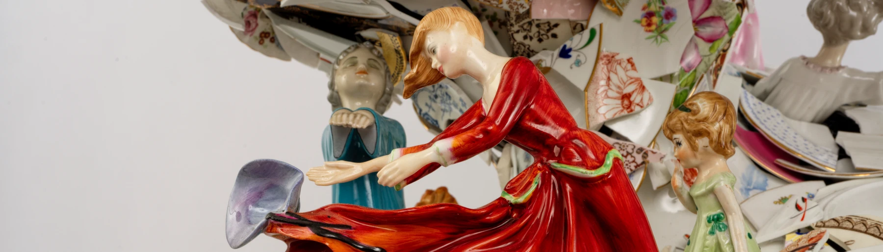 This exhibition marks a 20-year relationship between Barford and David Gill Gallery, who have represented the artist since 2004. Barford last worked extensively with porcelain figurines between 2002 and 2011, a body of work through which he first became widely known. Returning to the medium after a 14-year hiatus felt significant. “When I cut up and put figures together again, it feels like I am speaking a language I haven’t used in a long time,” he says. “In that sense, it feels like coming home.”