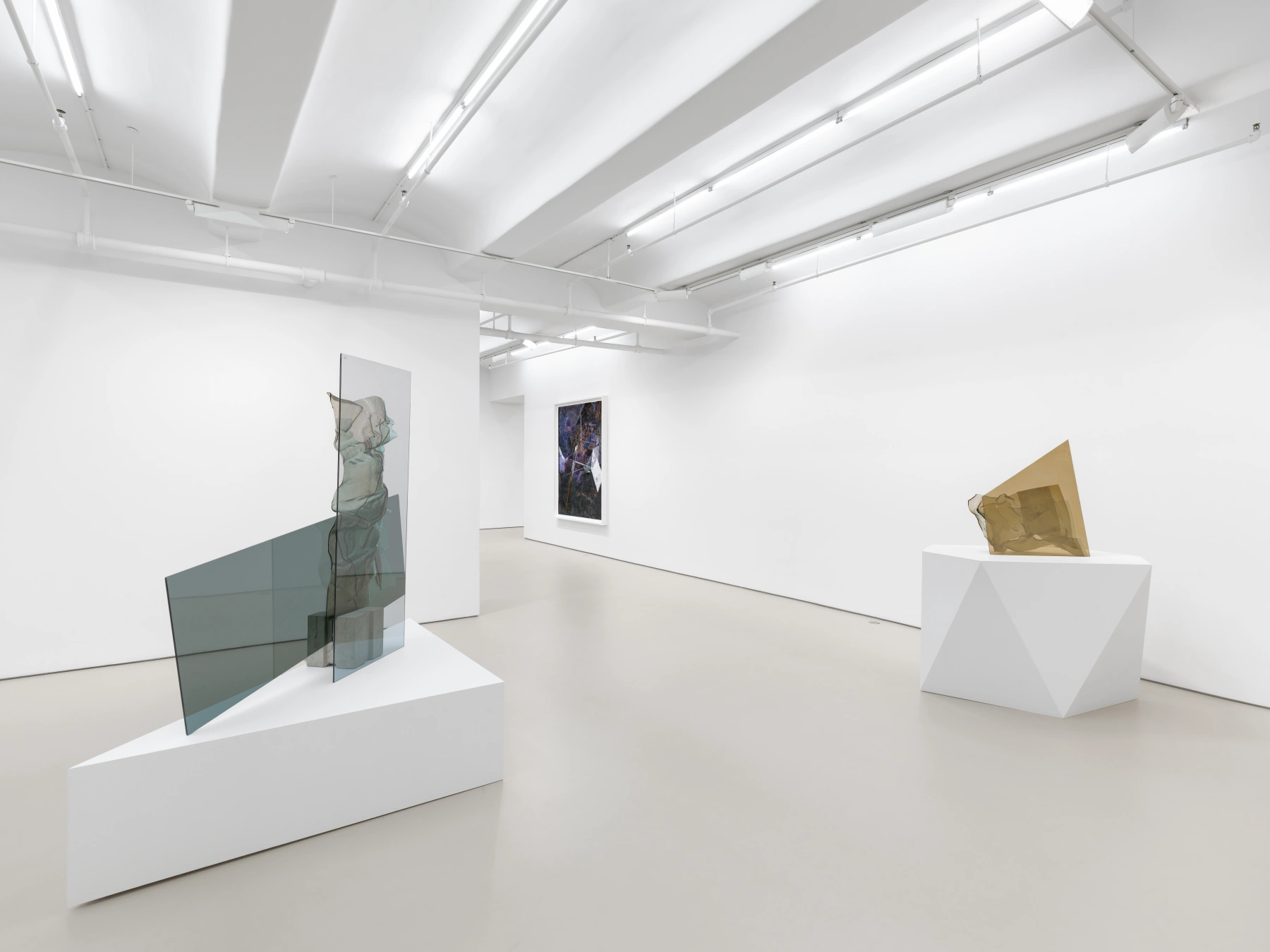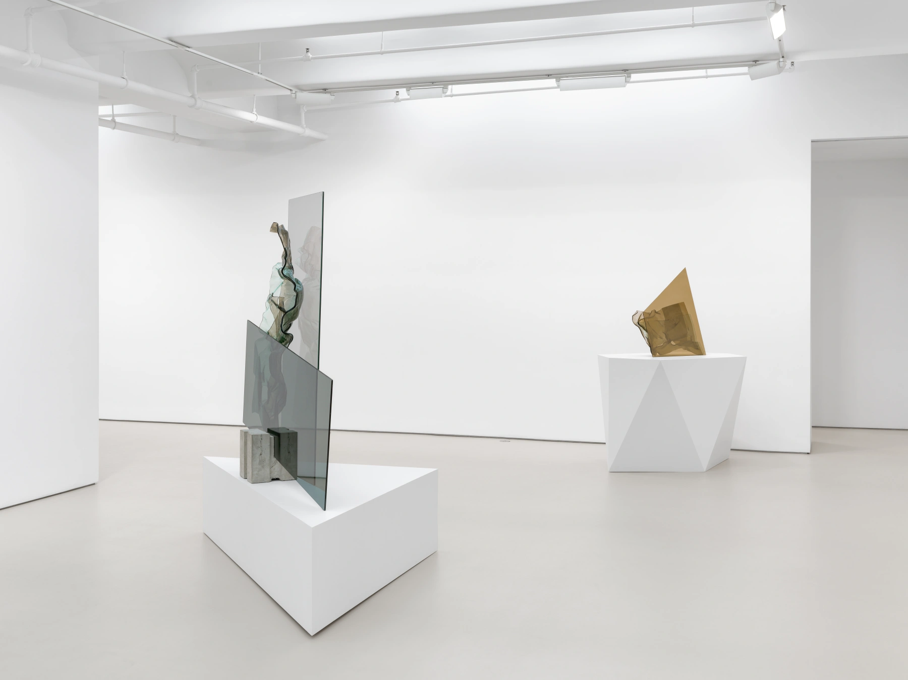 The sculptures in this series—panes of glass pressed and held by one another and fused into precarious forms—materialize this ideological pressure and ‘the squeeze.’ The physical force exerted by the glass onto itself and the implied threat of its collapse onto the body, fix identity to incongruence. In this way, these uneasy structures echo how Black intimacy is regulated and foreclosed: spaces of tenderness and interiority are pressed to the brink of caving under the weight of surveillance and the risk of violence.