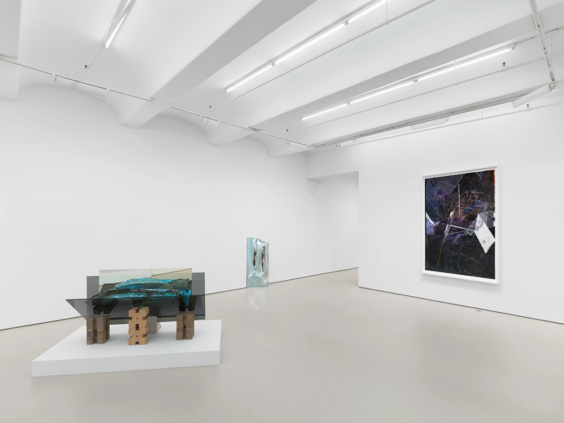 Through these unstable encounters, the sculptures and canvases presented in mis-/mé- (squeeze) demonstrate the persistence of Black intimacy and interiority under duress.