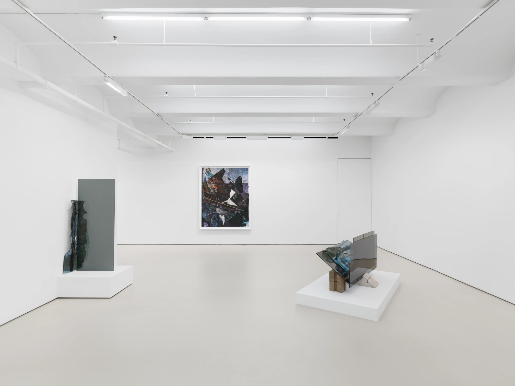 The works on canvas extend this inquiry. Beginning as collaged documentation photographs of earlier sculptures, they undergo recursive manipulations—etching, layering, recomposition and even literal squeezing. Each stage pushes the work further from its referent: the three-dimensional collapses into distorted photographs, which are then effaced by the actions of the hand, only to return to sculpture, now displaced and alienated from its originary self. Here, the subject and its image cannot stand still; they are caught instead in the refracting loop of desire’s racialized libidinal economies.