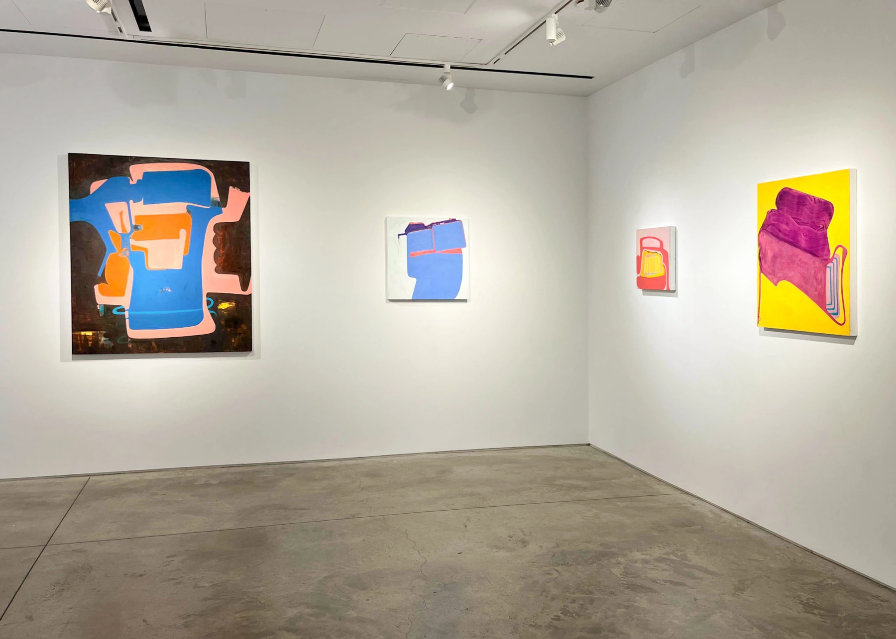 Quirky, ambiguous figures inhabit Fran Shalom’s paintings. Their bright, cartoony colors and buoyant forms fill each composition with playful energy. Her shapes, while fully abstract, reference the body and recognizable objects. She thinks of them as, “ambiguous characters who inhabit my studio keeping me company and often engaging in silent conversation.” Animated and boisterous Shalom’s characters are evocative of the familiar but remain just out of reach.