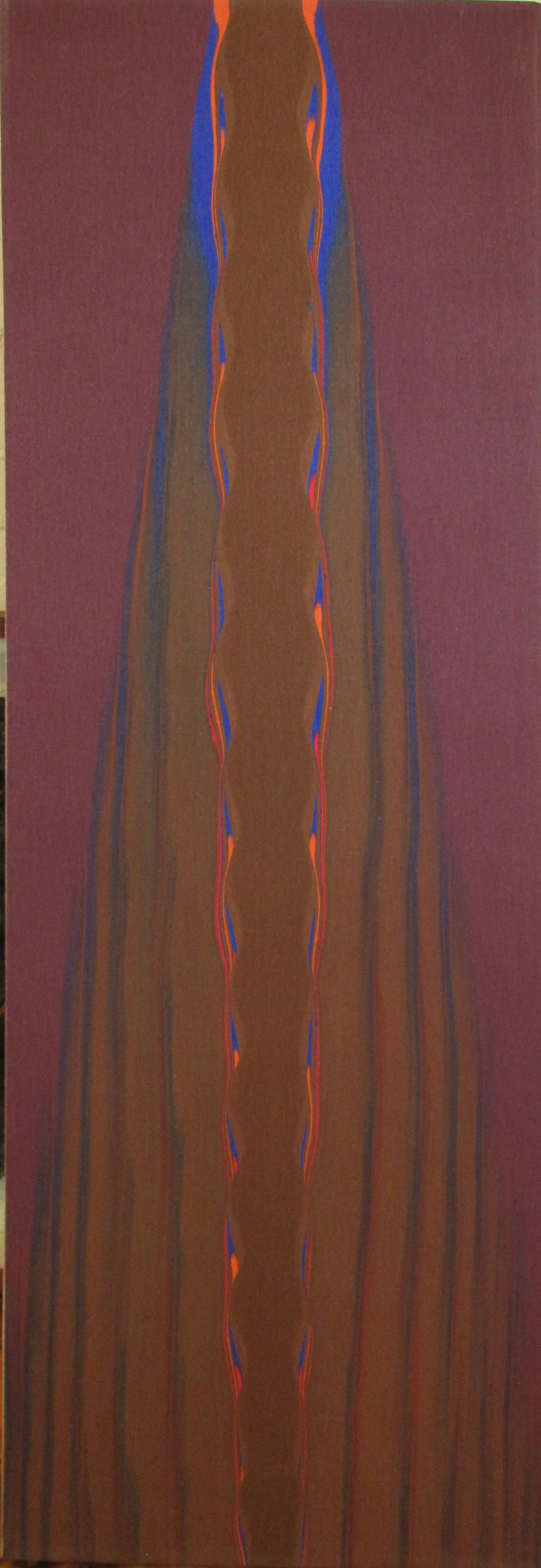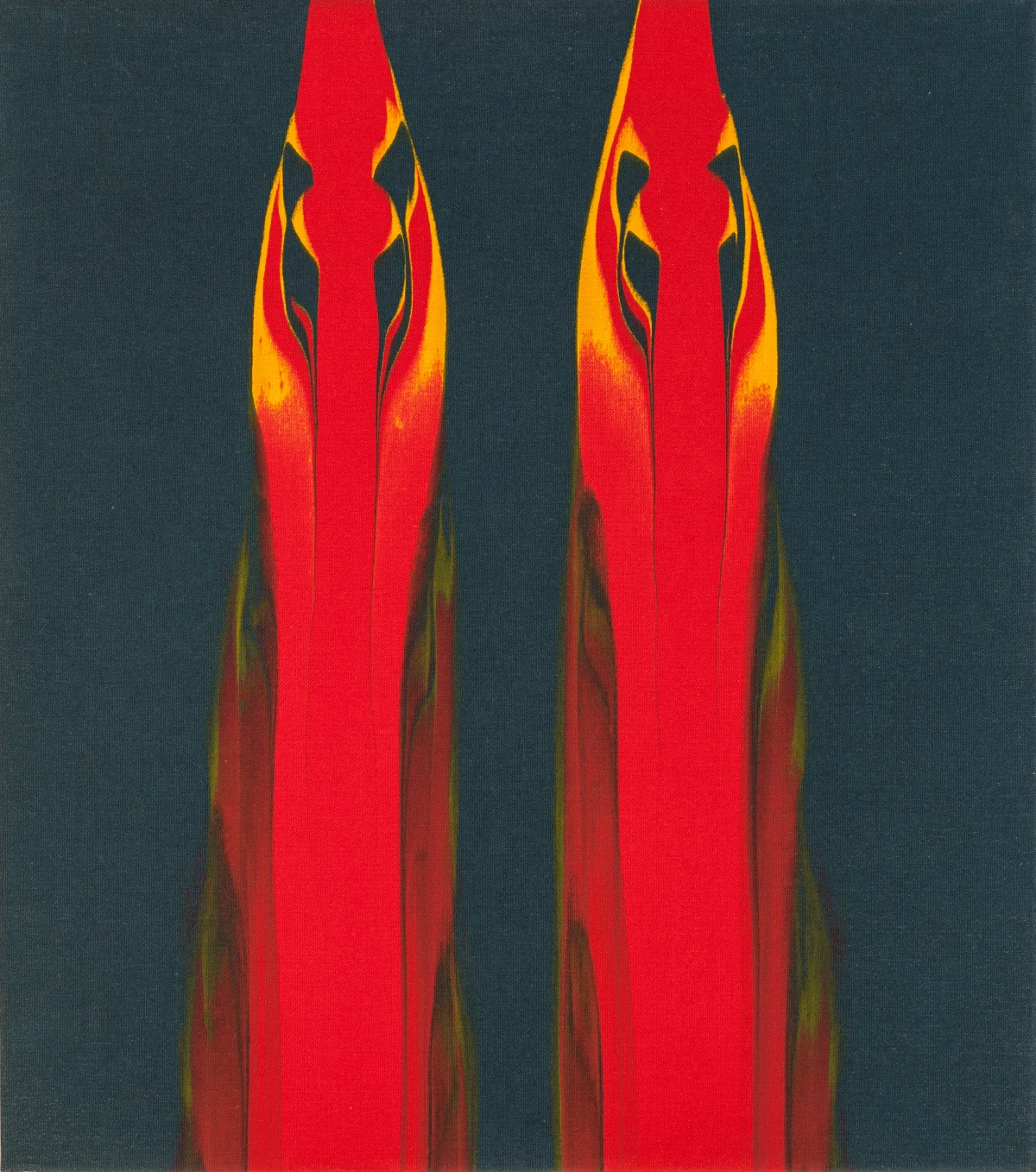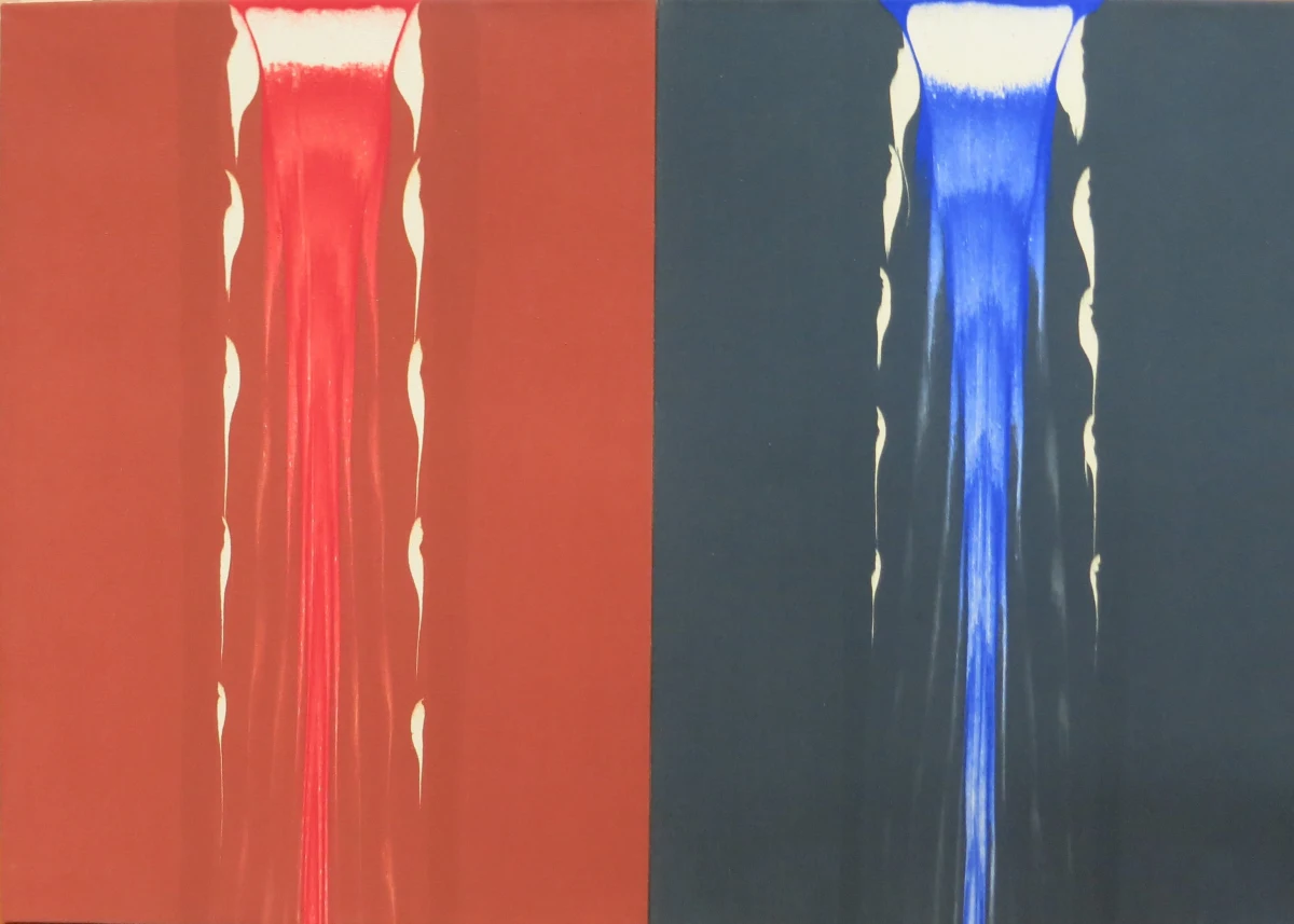 In 1965, Hedge radically reimagined his process by experimenting with acrylic paint. He poured pigment directly onto canvas, coaxing it into biomorphic shapes with a squeegee to create rhythmic compositions that balance control and chance. These works, often produced in sets, explore infinite variations of a single visual idea—each canvas an intimate meditation on movement, repetition, and restraint.