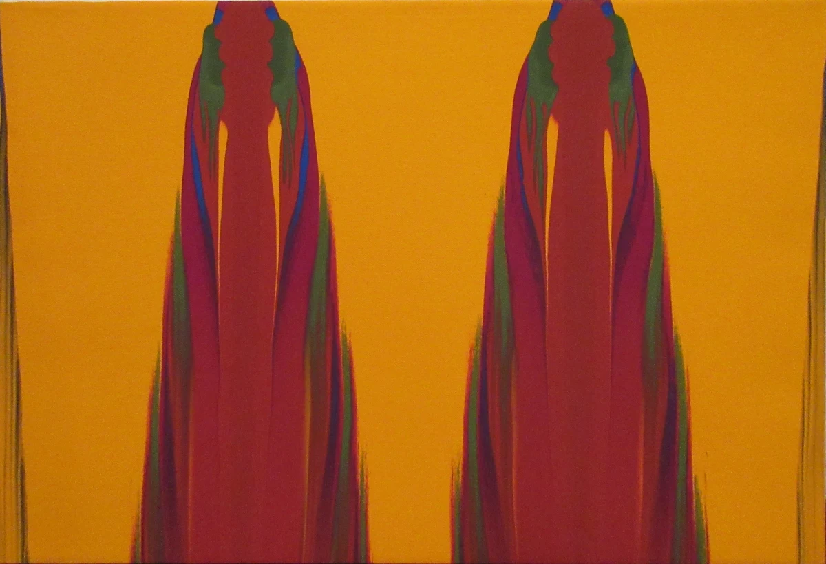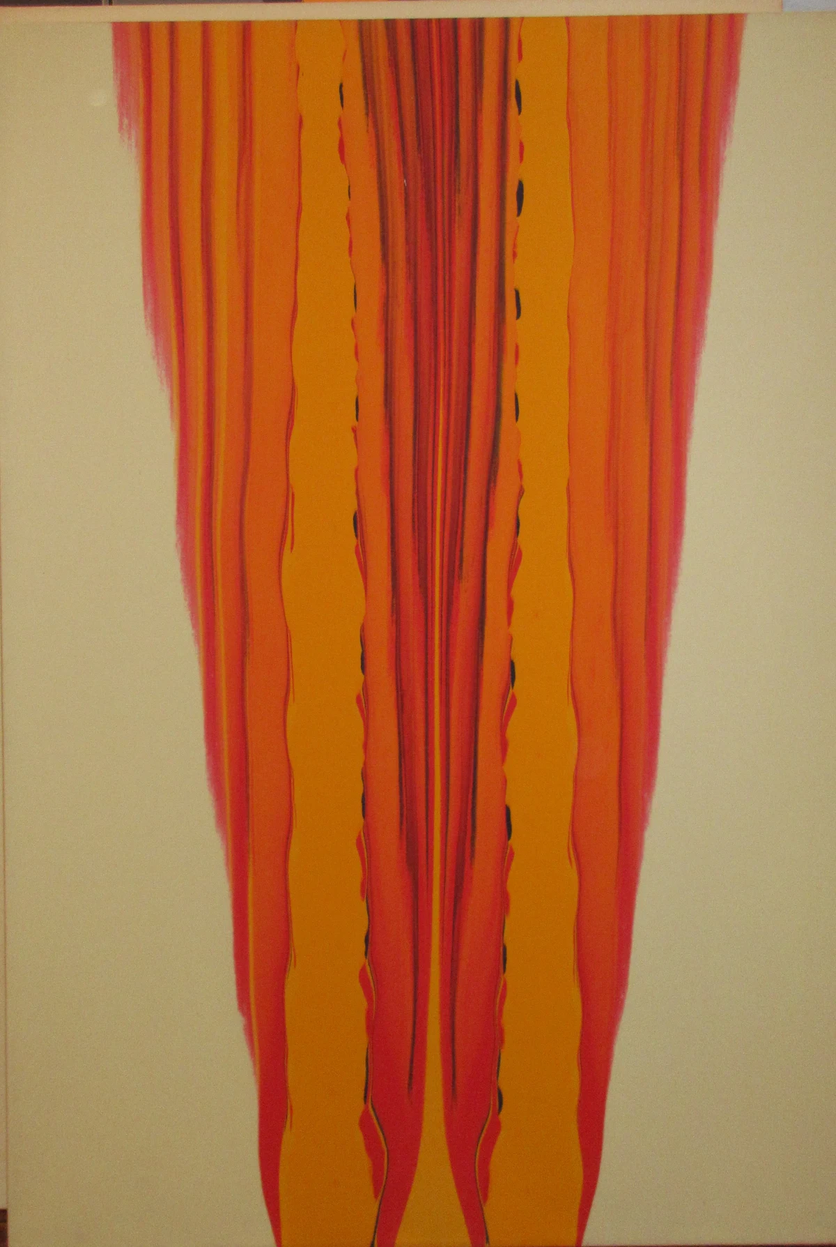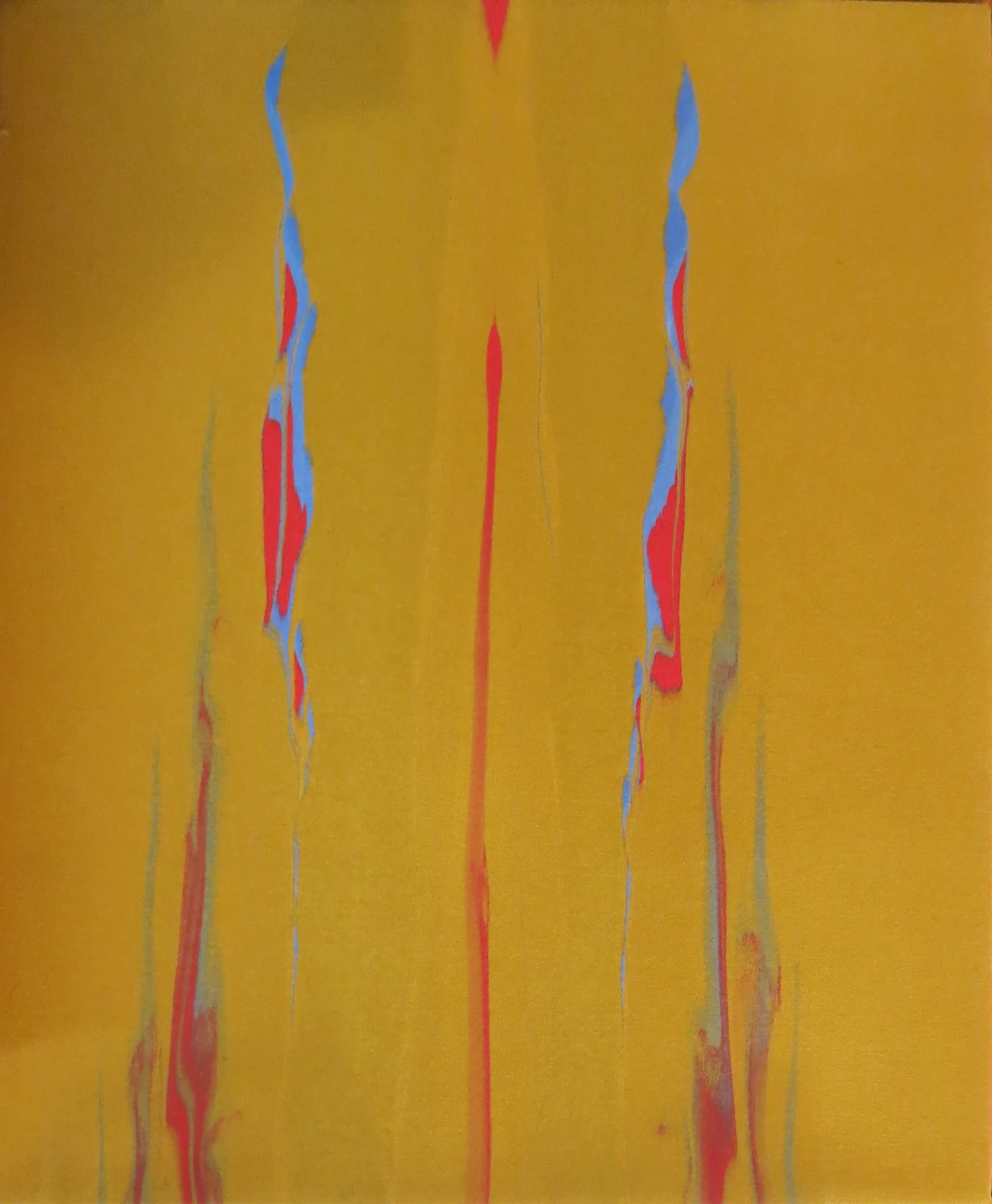 In 1965, Hedge radically reimagined his process by experimenting with acrylic paint. He poured pigment directly onto canvas, coaxing it into biomorphic shapes with a squeegee to create rhythmic compositions that balance control and chance. These works, often produced in sets, explore infinite variations of a single visual idea—each canvas an intimate meditation on movement, repetition, and restraint.