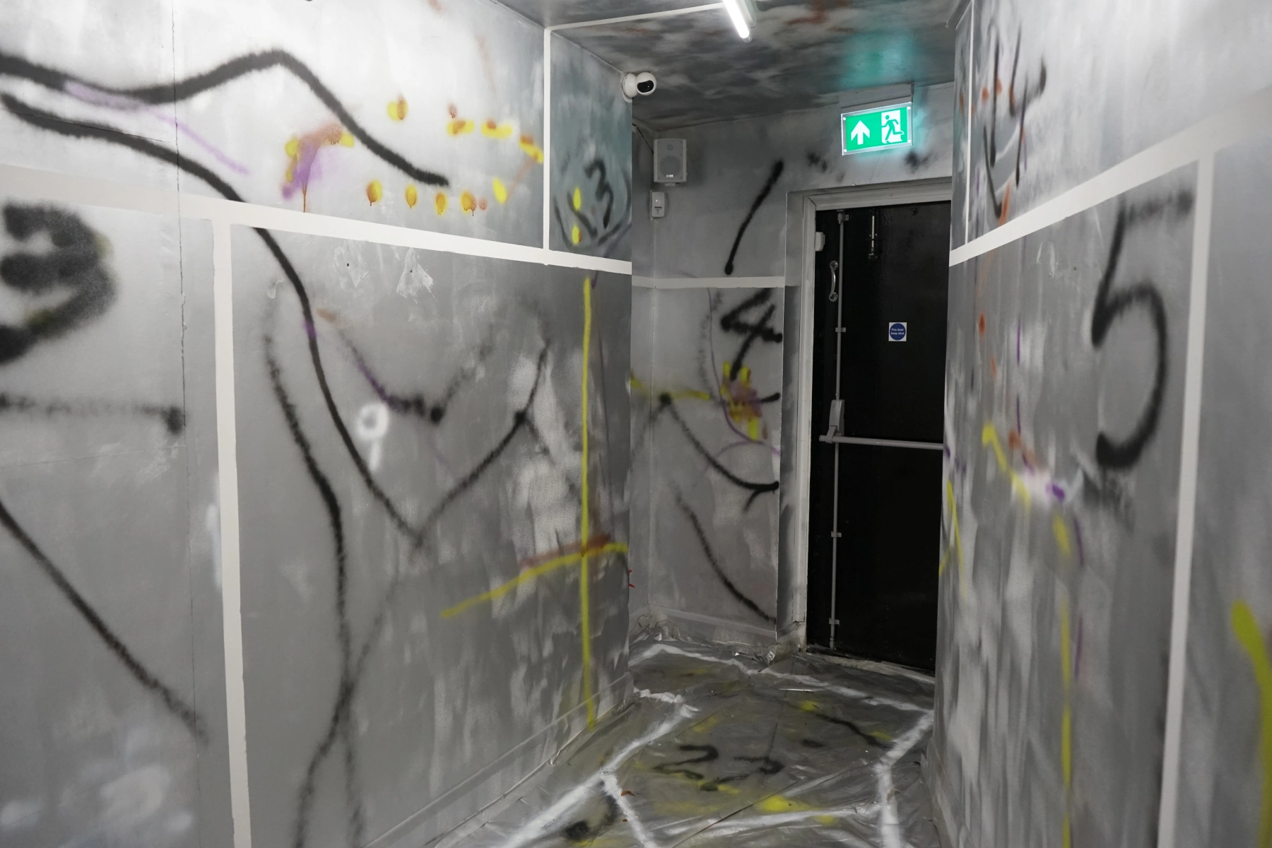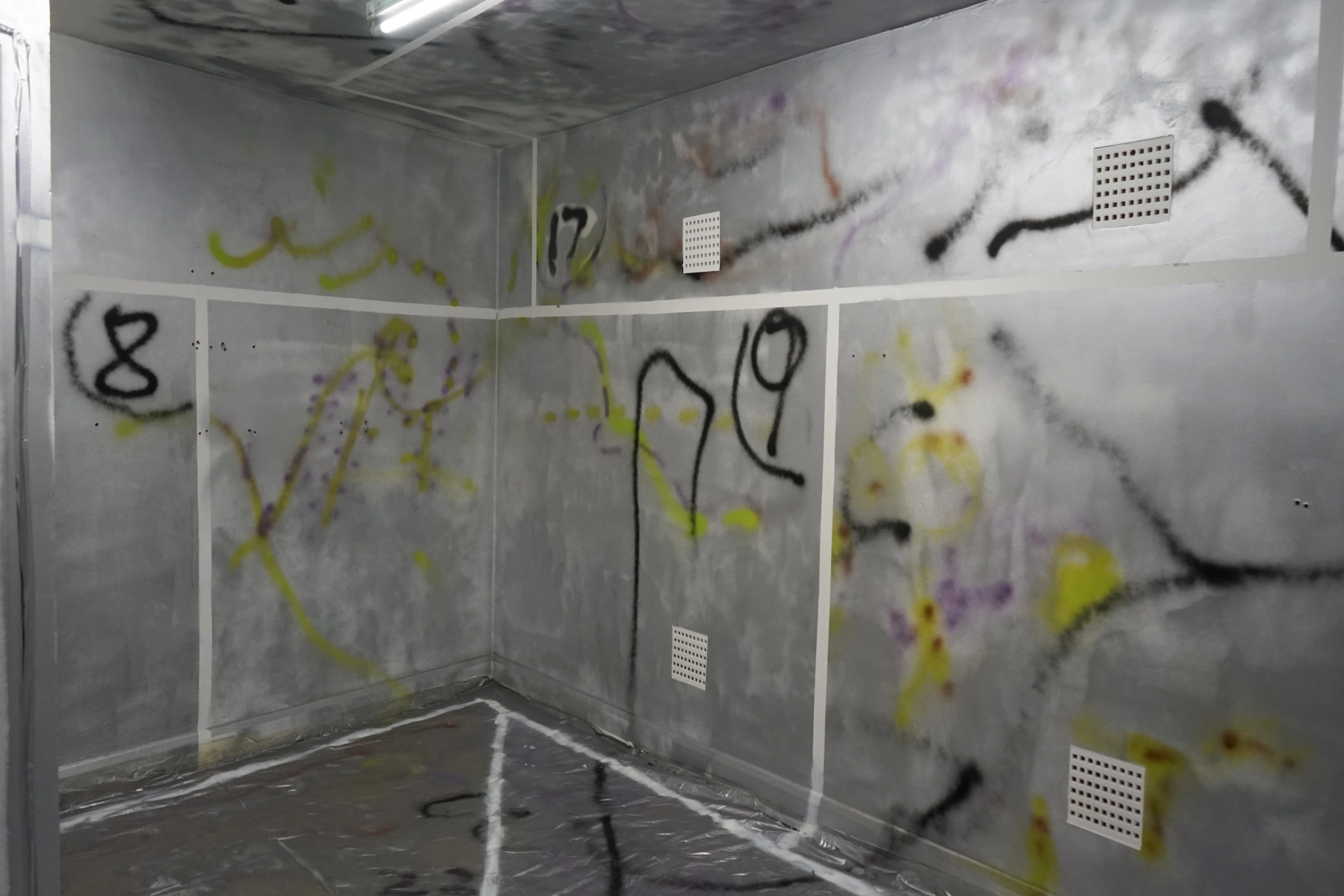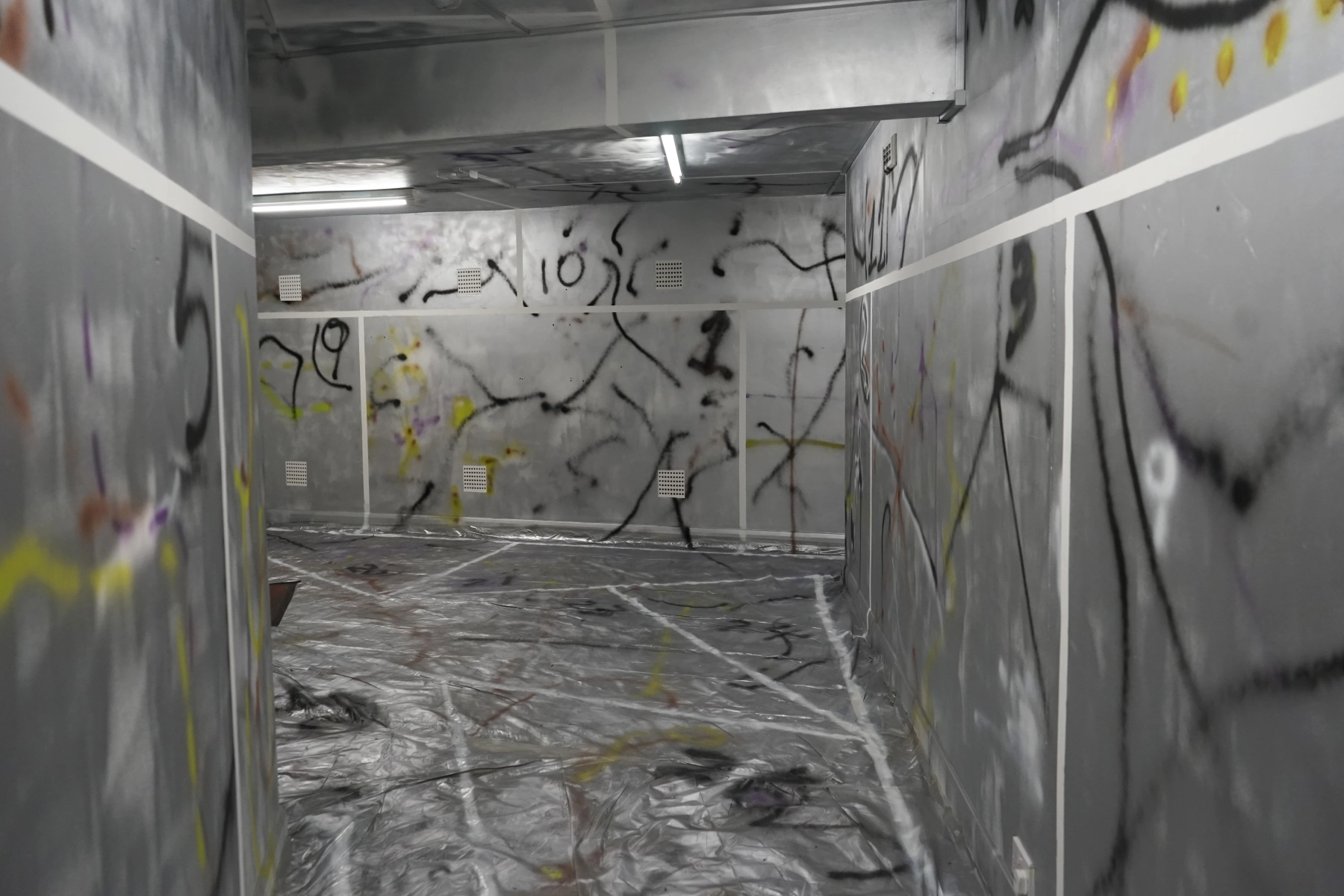 Vomit Green and Muddy Brown finds its specific origins in Wang’s experience of having his bike stolen. In an experiment to see if ‘uglify-ing’ could act as a practical deterrent to theft, Wang spray-painted his replacement bike in the eye-watering, repellent clash of colours that gave its name to the exhibition. He also scratched, scuffed, scraped and carved various names across the metallic frame. Inspired by this process, Vomit Green and Muddy Brown is an exploration of the methods by which the viewer can be deterred, deferred and disrupted in the act of looking.
