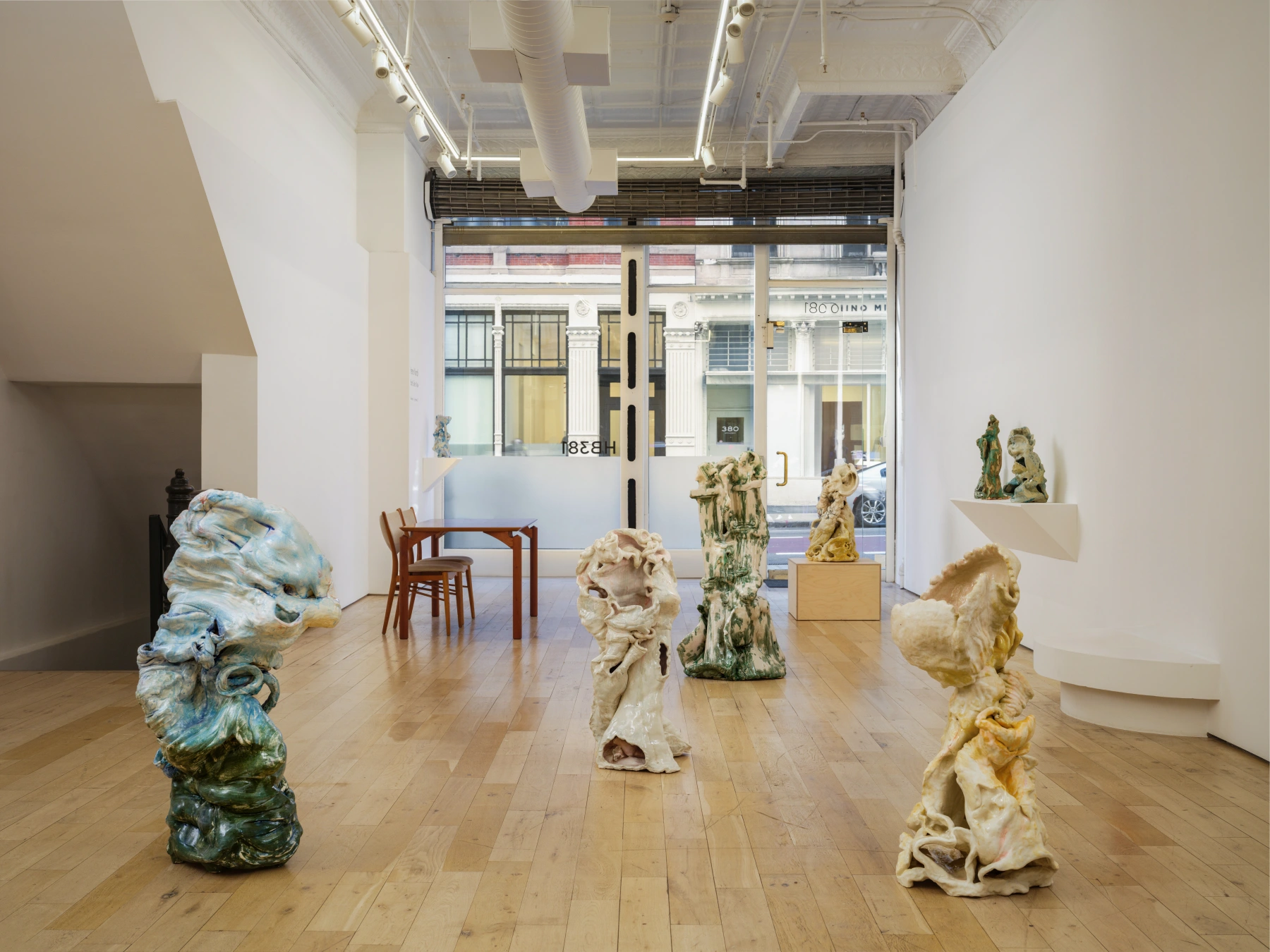 HB381 presents Both Sides Now, a solo exhibition of new sculptural works by ceramicist Irene Nordli (b. 1967, Norway). Nordli forms clay into convulsive vessels, complex assemblages freighted with wrinkling folds and amorphous ribbons of matter that sag, stretch, and compress under the active force of her hands. Exquisitely produced, her intricate sculptures turn the body of the vessel inside out, inviting viewers to contemplate both sides simultaneously: the interior and exterior, the refined and discordant, recto and verso, the structure and the open network of space within it.