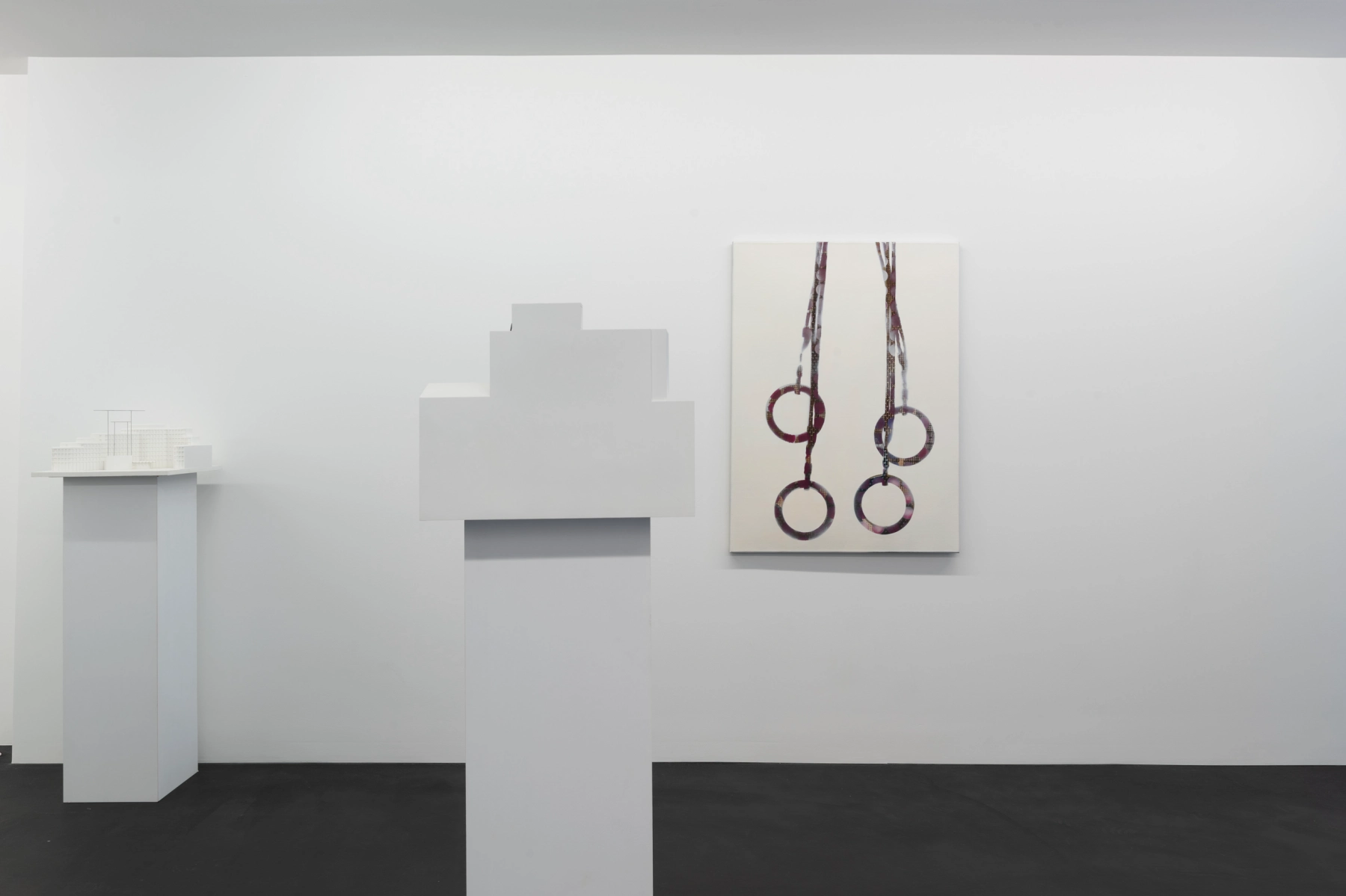 Architecture - modern architecture in particular - always played a significant role in Isa Genzken's work. She dedicated her 1992 film "Chicago Drive" to the city of Chicago, which she portrayed as the point of origin for modern architecture. The X-motif from the John Hancock Building designed by Skidmore, Owings, and Merrill appears in an outdoor project as well as a number of paintings and other sculptural works from this time. Genzken's engagement with architecture, however, extends beyond mere reference: questions of scale and spatial interrelations are central to her working method. This is particularly evident in her concrete works, which often miniaturize architectural typologies and relate to larger embodiments, whether real or imagined.