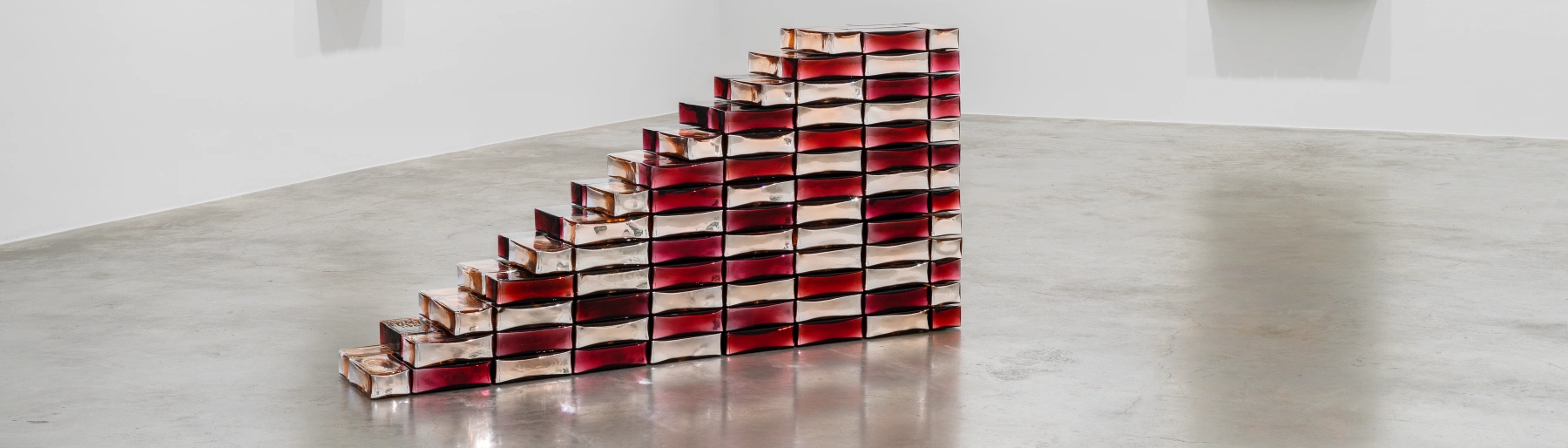 Born in the 1960s, in Saint-Étienne, a working-class mining town in central France, Jean-Michel Othoniel grew up amidst the realities of his industrial surroundings. He also had access to the vibrant contemporary collection of the Saint-Étienne Museum of Modern Art, in terms of size, second only to the Pompidou in France. At the age of ten, he encountered the work of American Minimalist Robert Morris, an experience that left a lasting impression. In this new exhibition, the works follow in the footsteps of those shown at the Collection Lambert in Avignon. They reflect the artist’s genuine interest in minimalism and abstraction, showing that beauty and sensuality are in no way at odds with radicality.