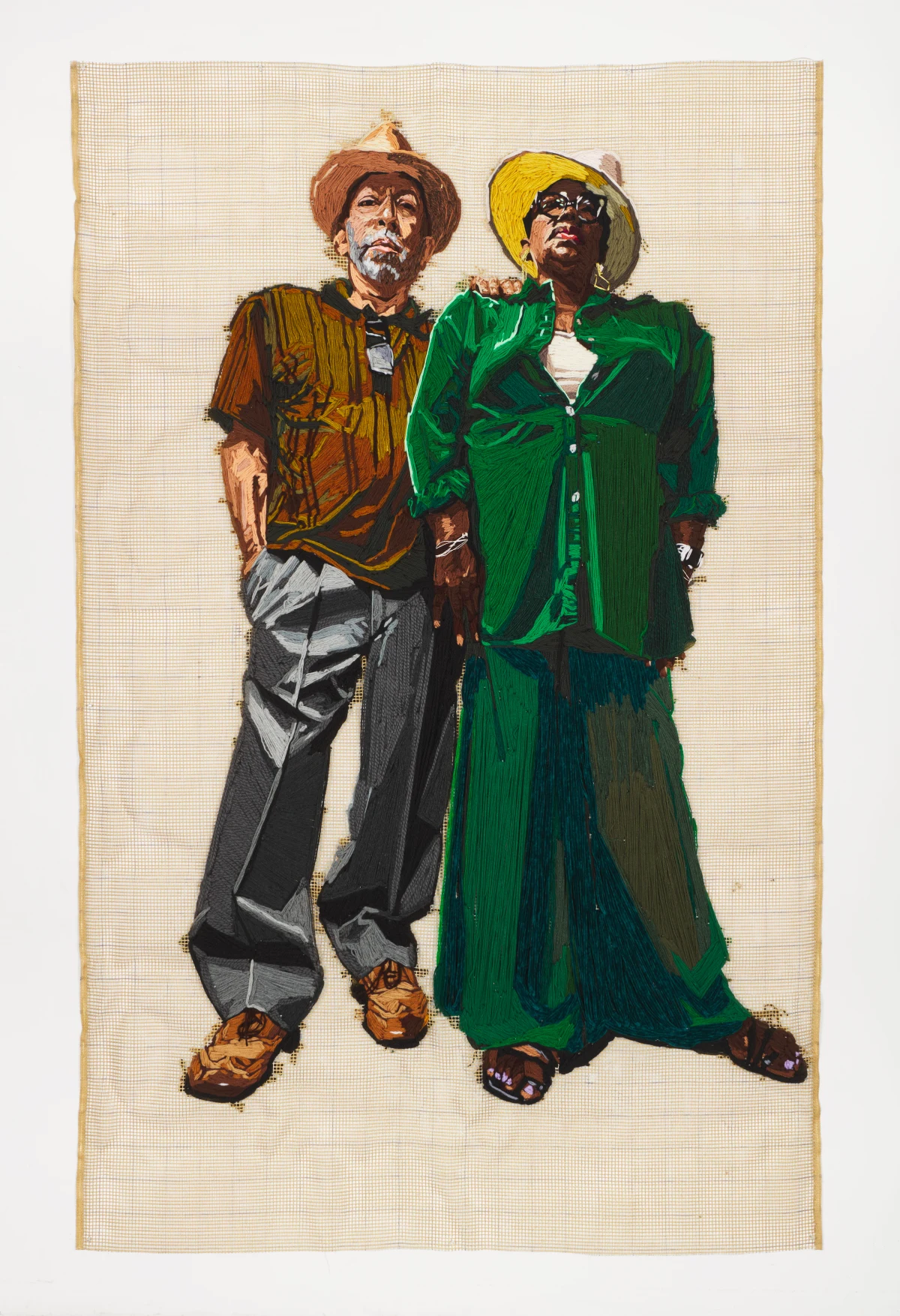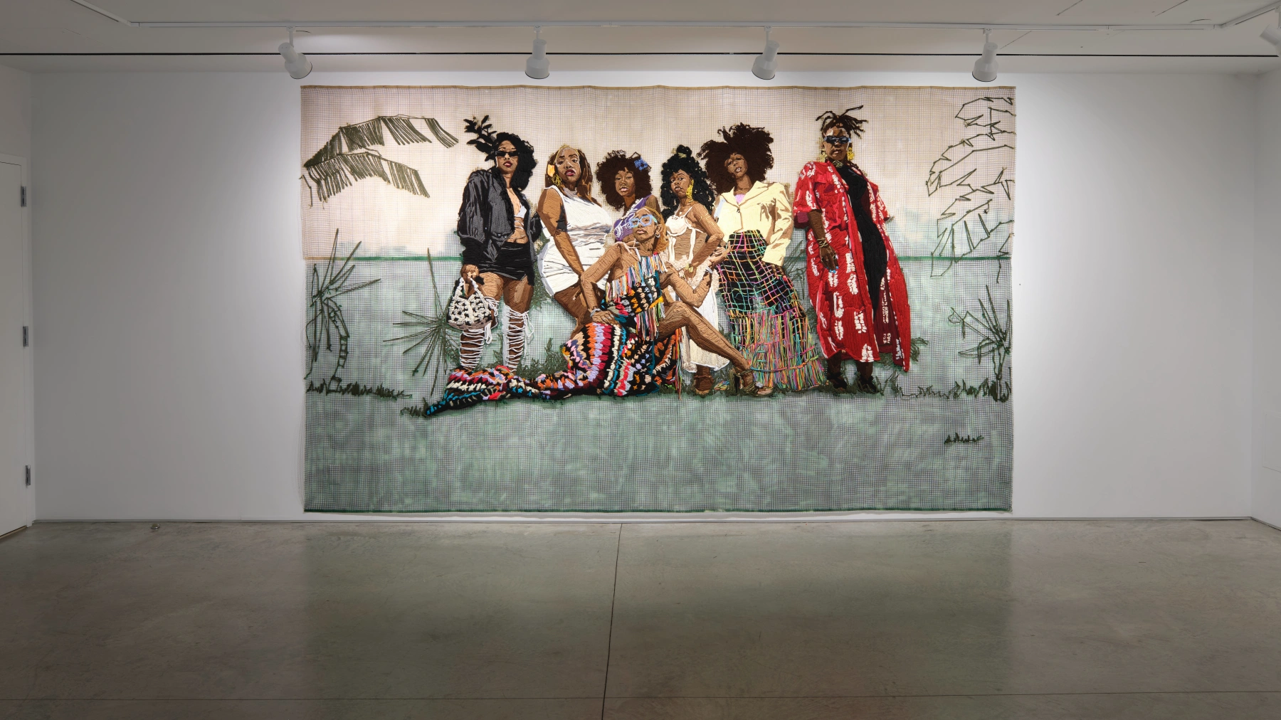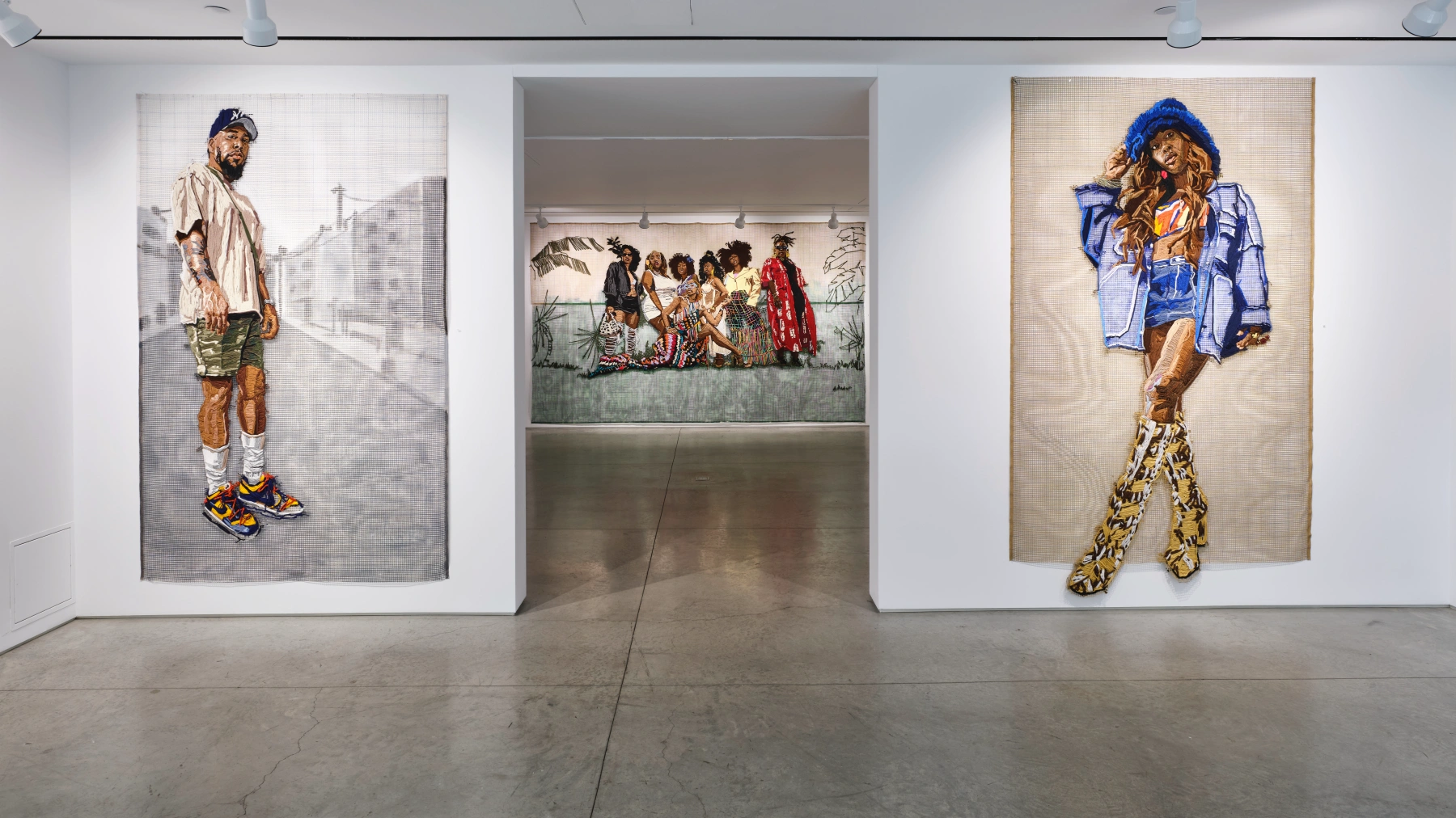 The exhibition debuts Lopez’s commanding new work City Boys (2025), conceived as a direct counterpart to City Girls (2025). On view together for the first time, these two multi-figure compositions, each depicting seven larger than life figures, open a vital dialogue on representation and visibility that honors the enduring strength of communities too long rendered invisible by dominant cultural narratives. City Girls offers a tribute to sisterhood, weaving together individual agency and shared solidarity through Lopez’s signature fiber technique. City Boys extends this conversation into brotherhood, exploring masculine identity with a focus on vulnerability and power. Through this pairing, Lopez asserts the complexity of portrayal, presenting a practice that is both deeply personal and firmly rooted in cultural memory.