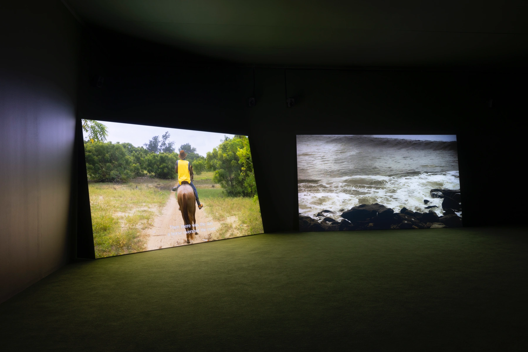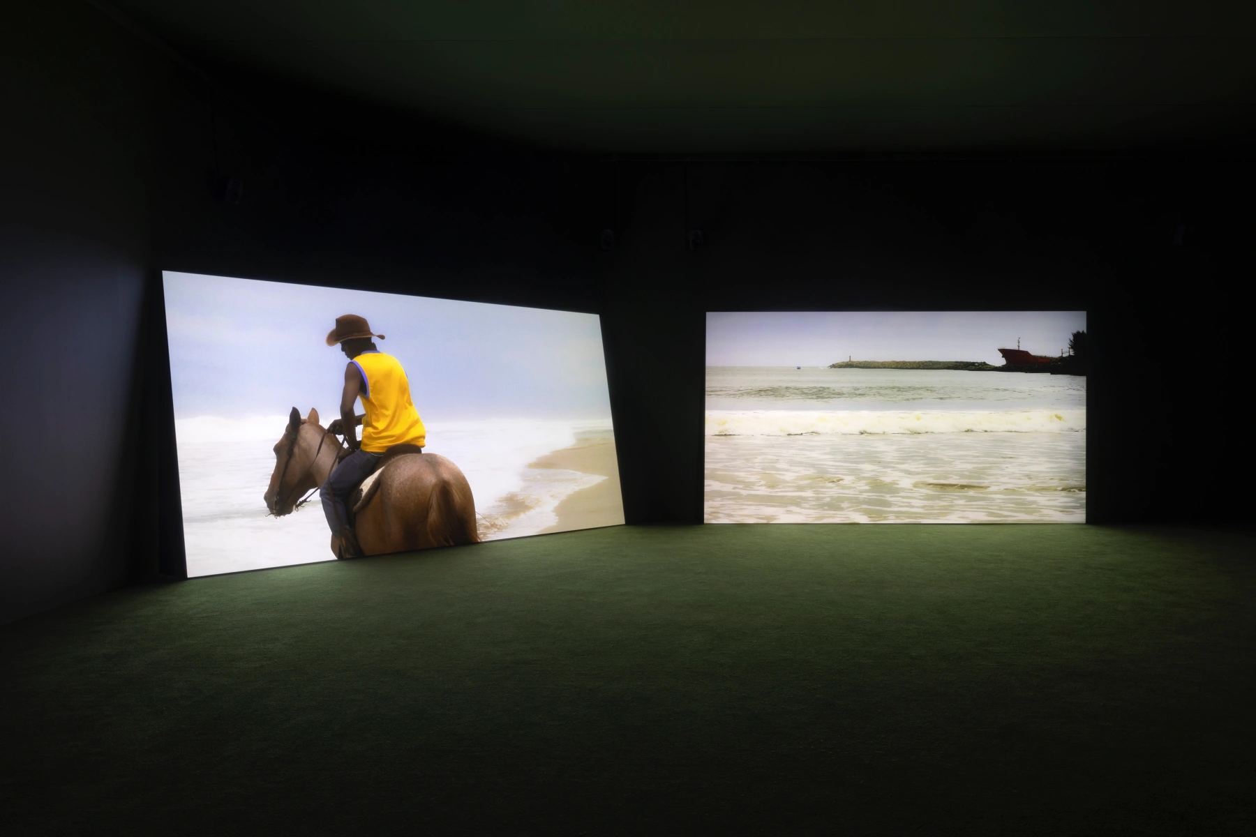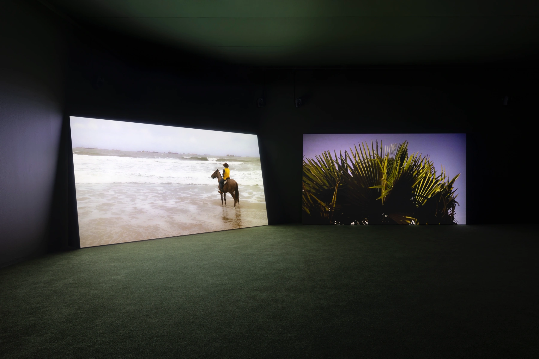 In addition, the exhibition features a selection of earlier moving image works also set in Lagos – King of Boys (2015), a window into the inner workings of the Makoko abattoir, and Cowboy (2022), a two-channel film that follows a man who has dedicated his life to the care of horses – configured within discrete environments that extend aspects of the films into the viewing space. The show takes visitors on a journey through the range of Ashadu’s practice, from the intimate to the expansive, featuring works that form a cinematic narrative of bodies and land – an undulating scenario of urban subcultures, quotidian labour, and our relationship to nature.
