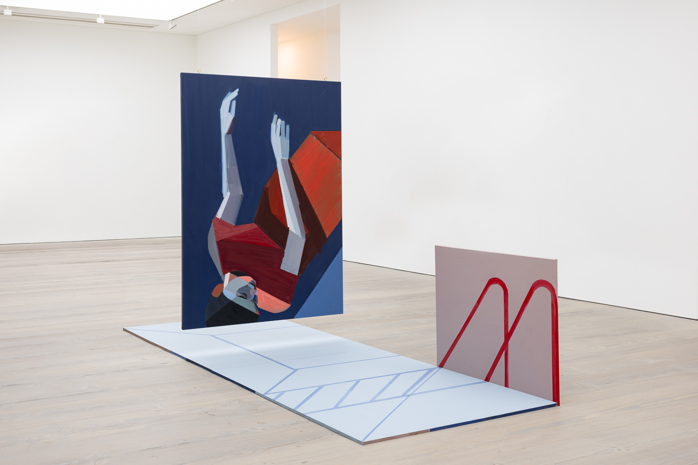 To explore Kristof's work is to trust in this submersion. The pool, in fact, is a purposeful motif, whereby space is demarcated both by fullness and emptiness. Above and below. Positive and negative space. And Kristoff is, at only 39 years of age, a master of composition and constructed space. Kristof, who trained as an architect, presents stylized, architectural works that shirk classification as figurative or landscape uses colour, shape, and composition to reference our greatest psychological emotions.