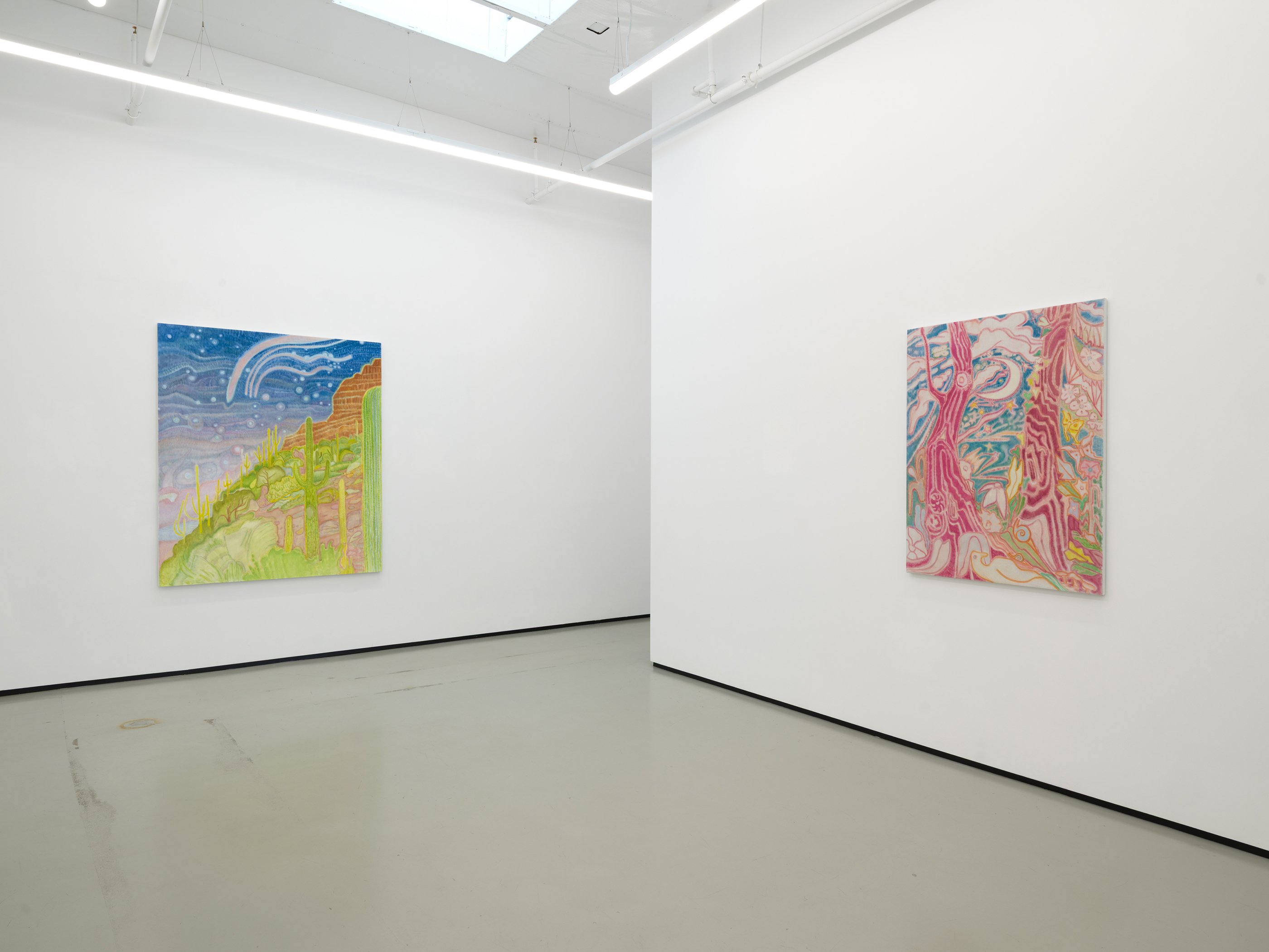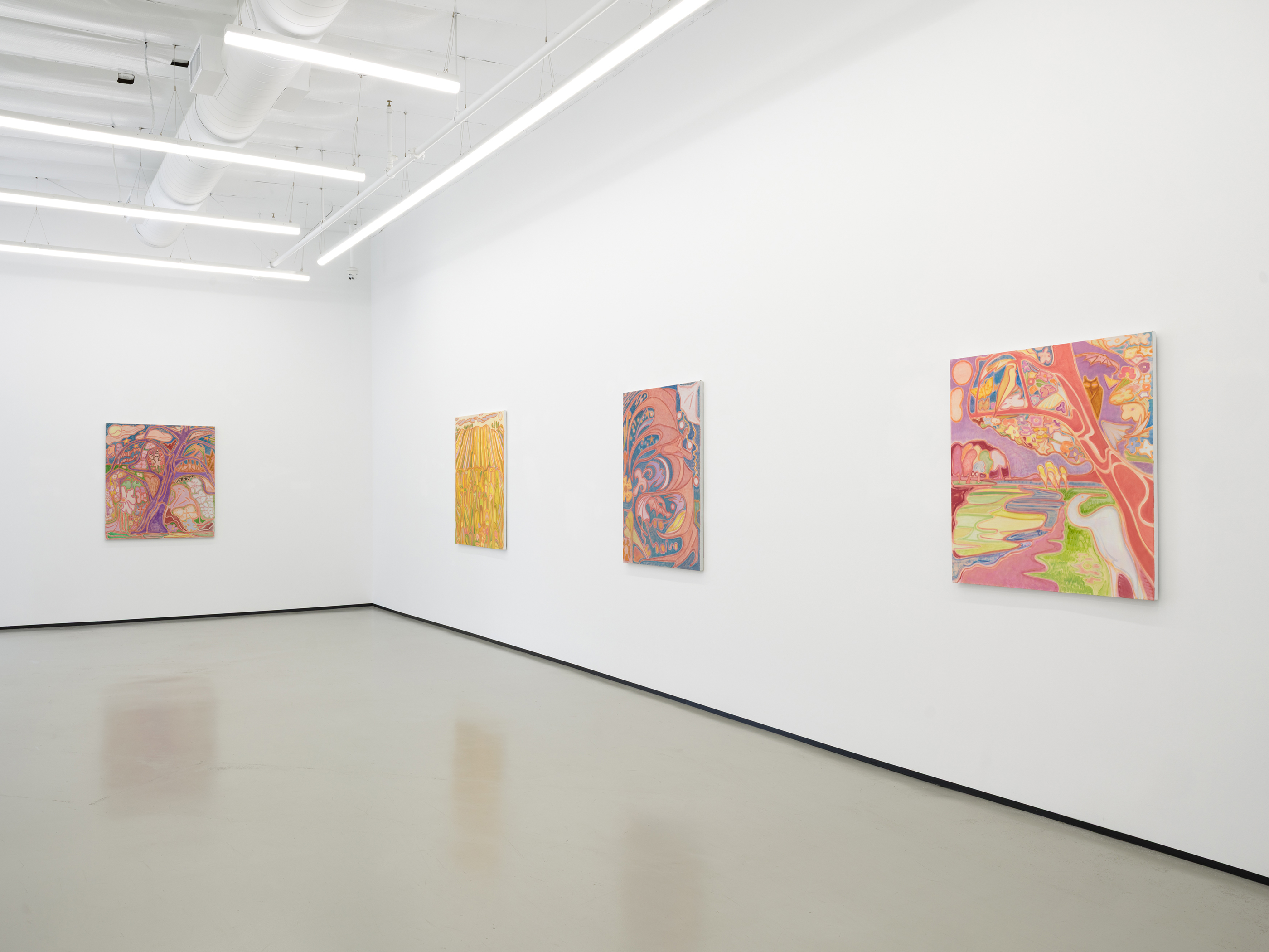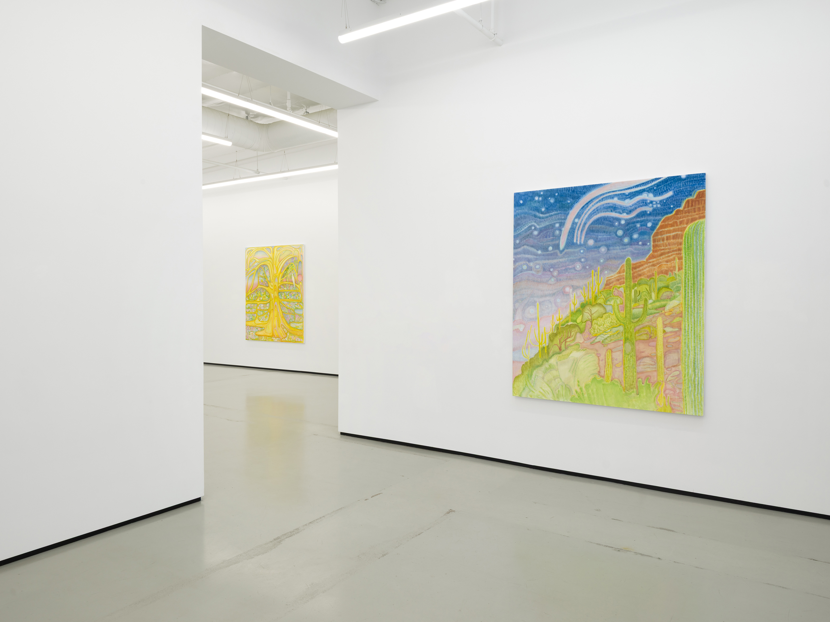 Nye comments, "In my new body of work, I have been thinking more about natural phenomena and exploring awe as a necessary force: awe of the skies, of the minutiae of the natural world around us, and its mysteries beyond our depth. I seem to be wishing for divine intervention. In sorting through some of the tension of our present moment, I am reminded that earth is finite and rare and holds the answers to our cascade of human problems. The natural world has been a recurring subject in my work and, in particular, the imprint of memories and how the feelings of place and time orchestrate color and expressiveness. The paintings ask us to pause and be present with the beauty of this world, to recognize how perfectly it sustains us, and to respect what is precious and precarious—animals, trees, stars, grass, and all the living things. They affirm our interconnectedness, reminding us that care must happen not tomorrow, but NOW."