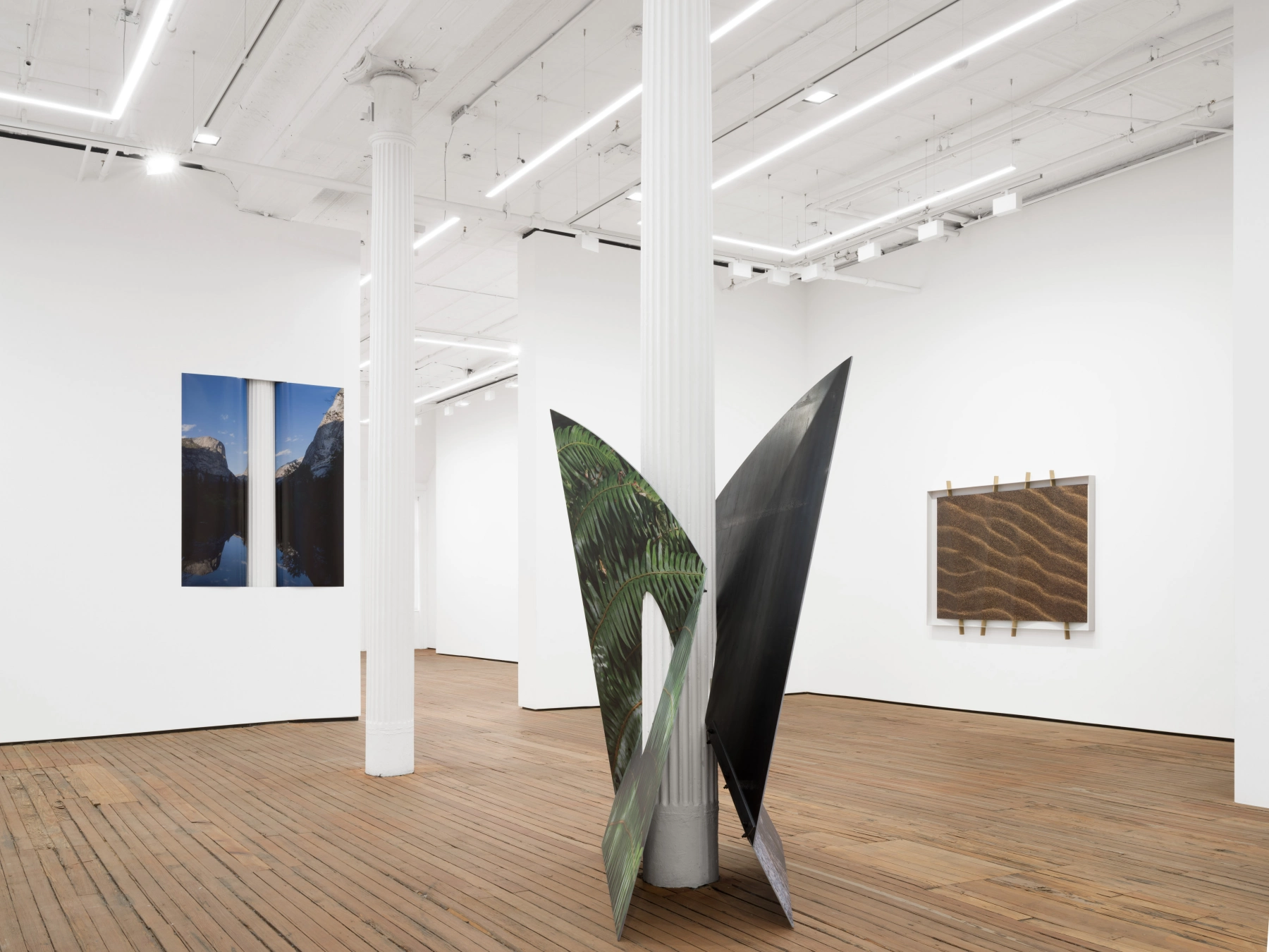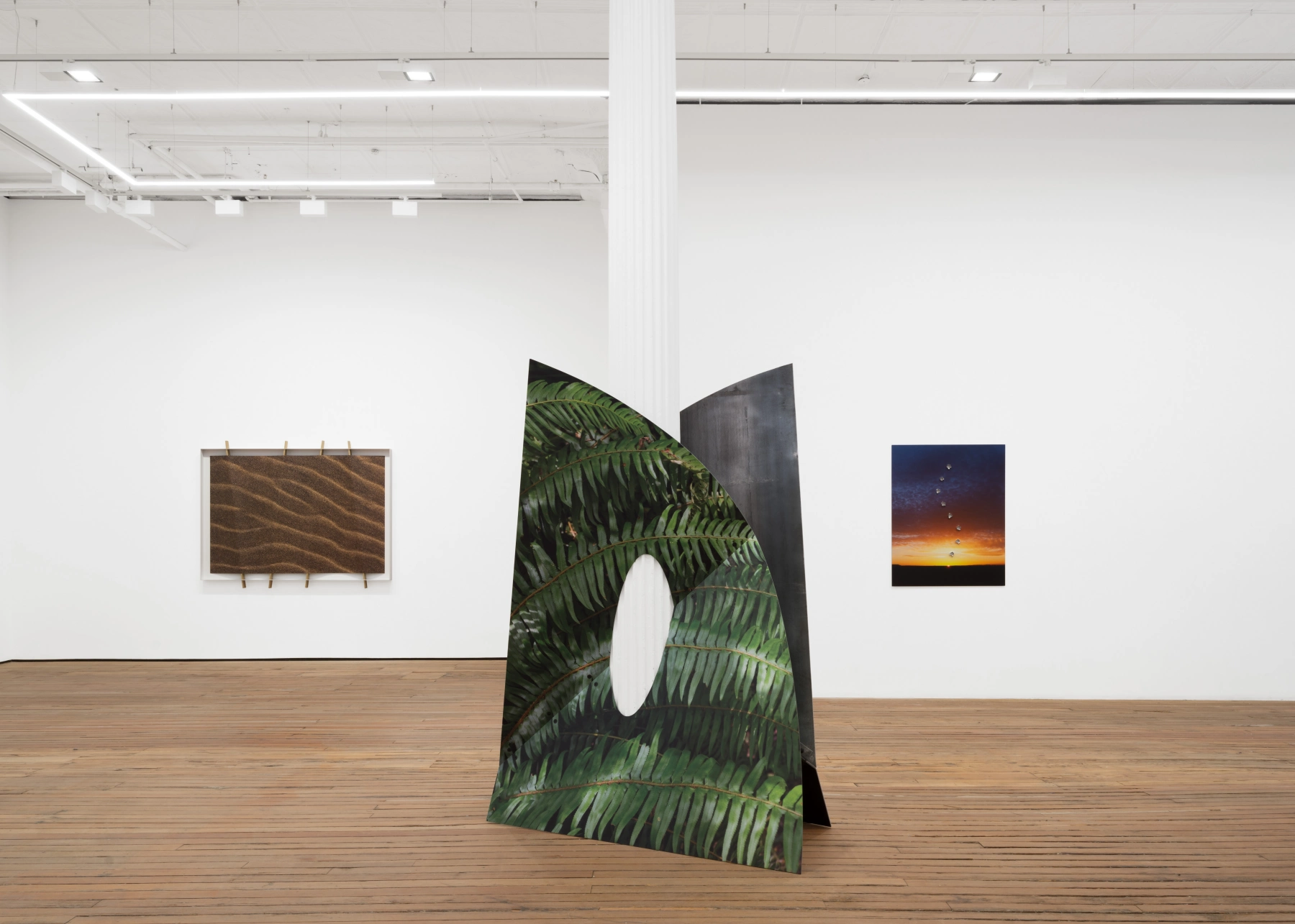 Building on her ongoing exploration of how images occupy and respond to physical space, the works in this exhibition engage the gallery’s architecture as both subject and structural partner. For this exhibition, Wilson expands her investigation into the relationship between photography, sculpture, and the built environment. By integrating photographic images with materials such as steel and concrete, she transforms images into physical structures that are bent, folded, welded, pierced, and embedded. Her work dissolves the boundary between image and object, creating forms that exist simultaneously as photographs and sculptures.