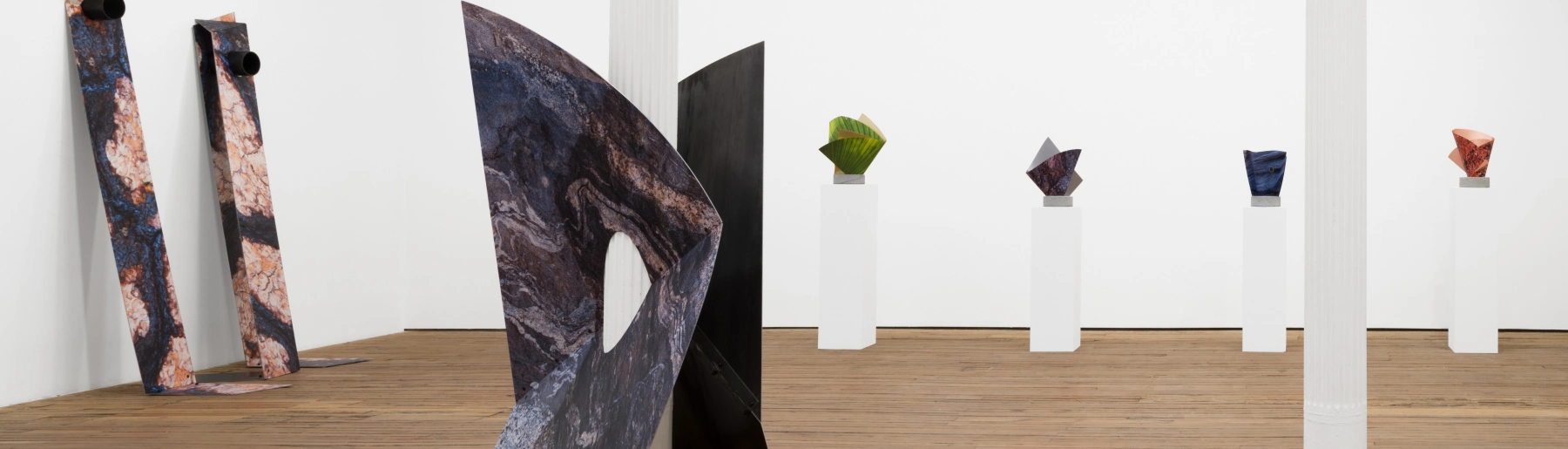 For this exhibition, Wilson developed works in direct response to the gallery’s structural cast-iron columns. A central sculptural piece embraces the column itself, while a wall-based work cuts into the gallery wall to reveal the column concealed beneath. These works foreground the physical infrastructure of the space, establishing a relationship between place and space. The title, Stone’s Throw, takes its name from an archaic, body-based measure of distance. Instead of relying on fixed numerical systems, it invokes a felt and intuitive understanding of space, situating the viewer in immediate physical proximity to the work.