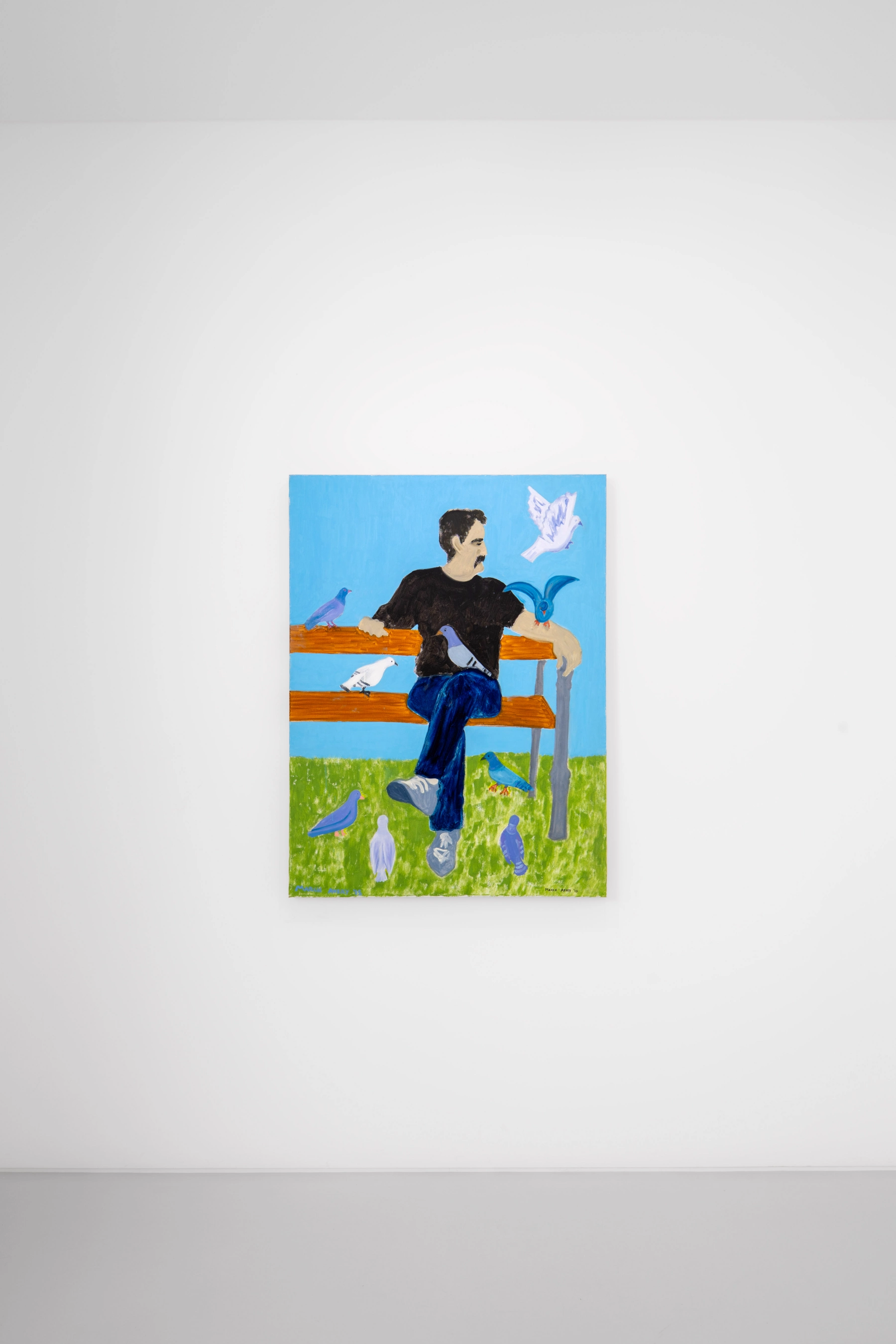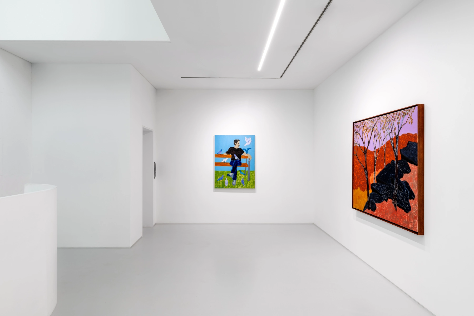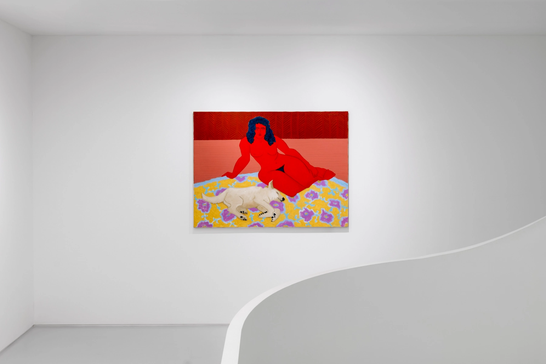 Avery’s paintings unfold like scenes from a diary, capturing quotidian scenes of family life, friendship, leisure, introspection, and quiet observation. From intimate domestic interiors to sunlit beaches and contemplative mountain ranges, her work draws directly from lived experience. Beginning with reality, Avery gradually shifts toward abstraction, transforming figures and settings into radiant blocks of saturated color and simplified form. As we let our eyes run over her cavasses, however, each form turns into an inexhaustible intensity: scarlet red, immersive lilac, sage green, pale blue, mustard yellow, tender emerald, to name a few of the honeytrap shades which draw the eye closer. Each of these shades luminous while gentle, rubs against and compliments the others.