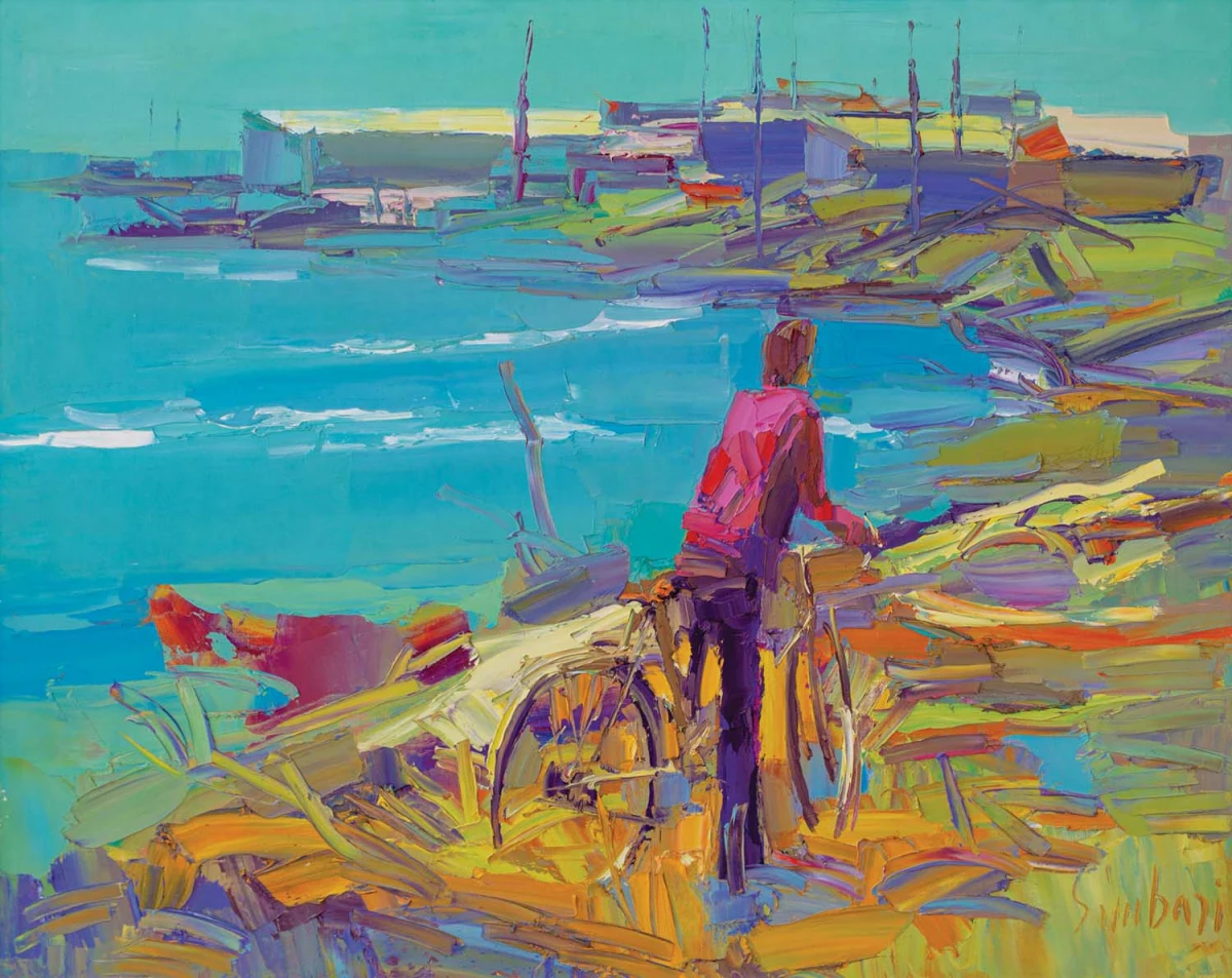 Born in Calabria in 1927 and trained at the Accademia di Belle Arti in Rome, Simbari brought a hybrid sensibility to his art: an architect’s respect for structure combined with an impressionist’s devotion to sensation. Over the course of his career, he moved fluidly between approaches — from geometric constructions to near-abstract color fields — yet always returned to figurative subjects and Mediterranean motifs. His training and background shaped the compositional rigor beneath the flamboyant surfaces: blocks of color often read as both built form and atmospheric light.