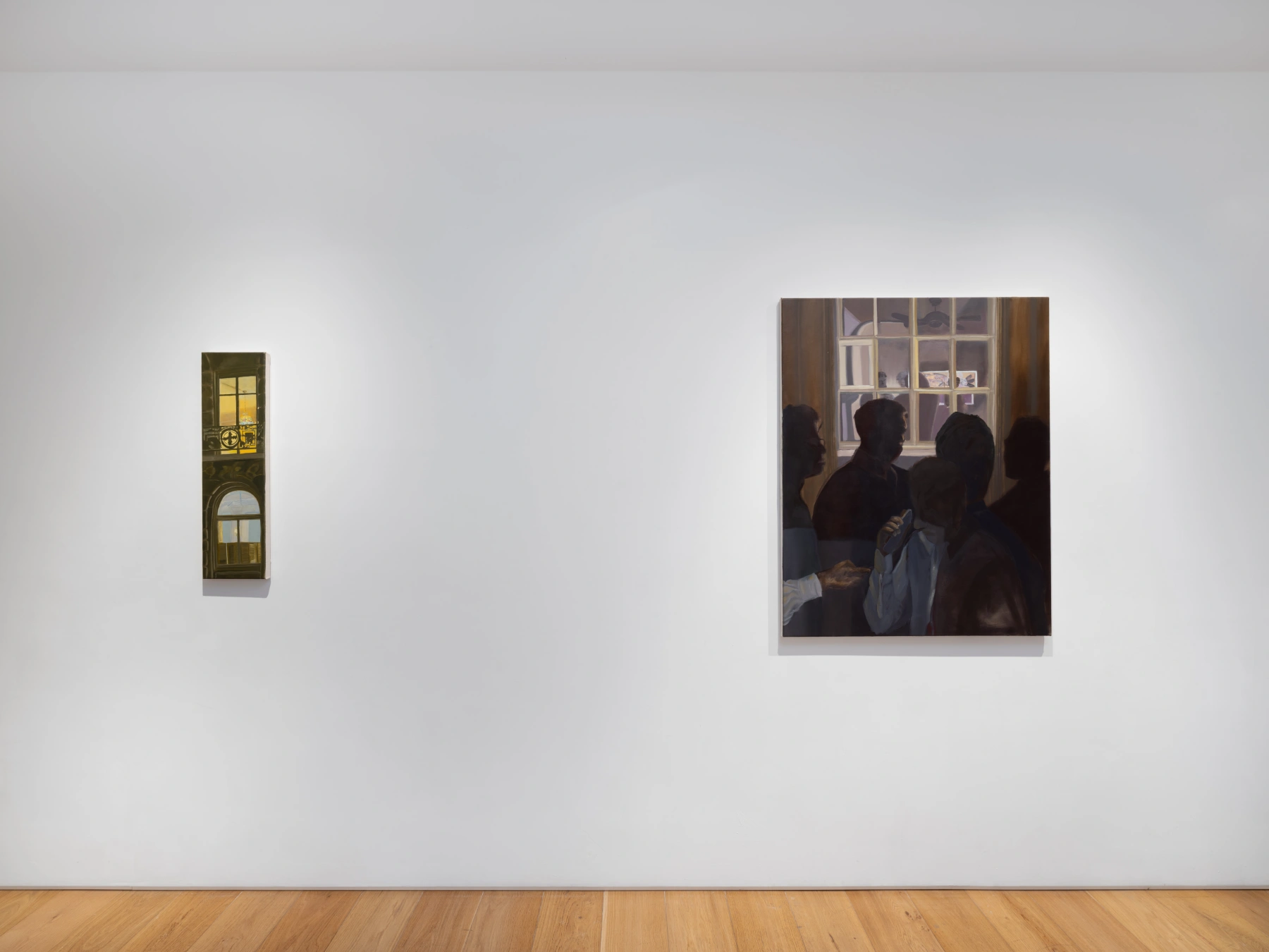 In its final room, Night Shift considers moments of intimacy and introspection, as Paul-Sebastian Japaz’s (b. 1992, New Jersey) and Cece Philips’ (b. 1996, London) luminous interior nightscapes reveal the quieter dimensions of nightfall. Japaz’s voyeuristic compositions capture glances through windows or doorways, or a quiet exchange in the dimmed light, as do Philips’ in her exploration of framing, visibility, and the act of being seen or unseen. Both works serve as a symbol that nightlife is as much about solitude and vulnerability as it is about moments of exuberance.