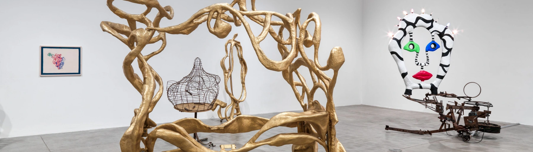 Niki de Saint Phalle and Jean Tinguely met and started working together in Paris, France in the late 1950s and were married in 1971. The pair forged an extraordinary personal and artistic relationship that continued to renew itself across multiple projects until Tinguely’s death in 1991, when Saint Phalle took over stewardship of his works until she died a decade later. The artists’ legacy and work are continued through the work of Niki Charitable Art Foundation and Museum Tinguely in Basel, Switzerland. The basis for the collection at the Museum Tinguely was provided by Niki de Saint Phalle’s donation of 52 sculptures from the Estate of Jean Tinguely, alongside many letters, graphics and archives. The exhibition takes place as part of the centenary celebrations of Tinguely’s birth. To mark this occasion, his innovative and playful oeuvre will be honored internationally with a range of exhibitions and events.