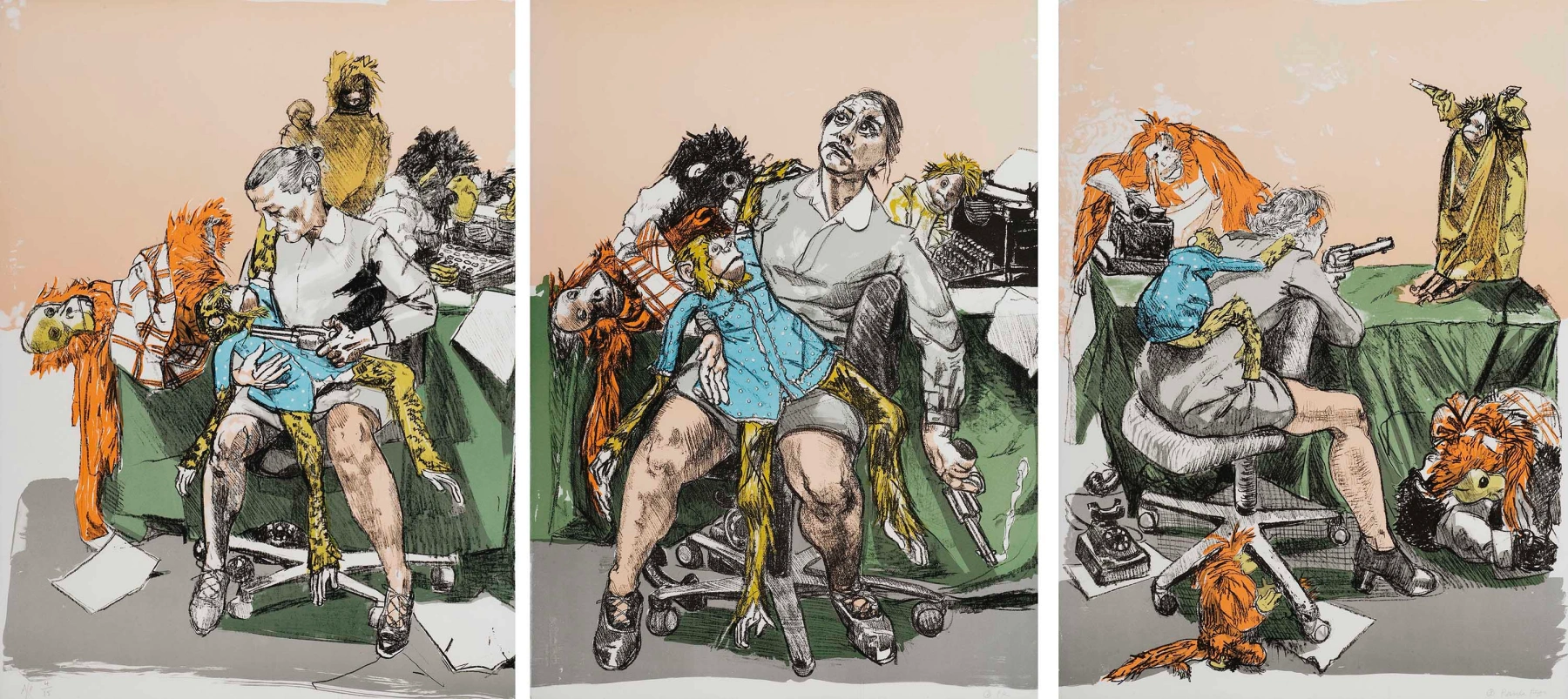 Focusing on her drawing practice, Rego explored darker and more complex themes than ever before. A major catalyst for this period was the connection she found in the work of writer and director Martin McDonagh (b. 1970), whose short stories Rego used as an inspiration to create a series of prints.