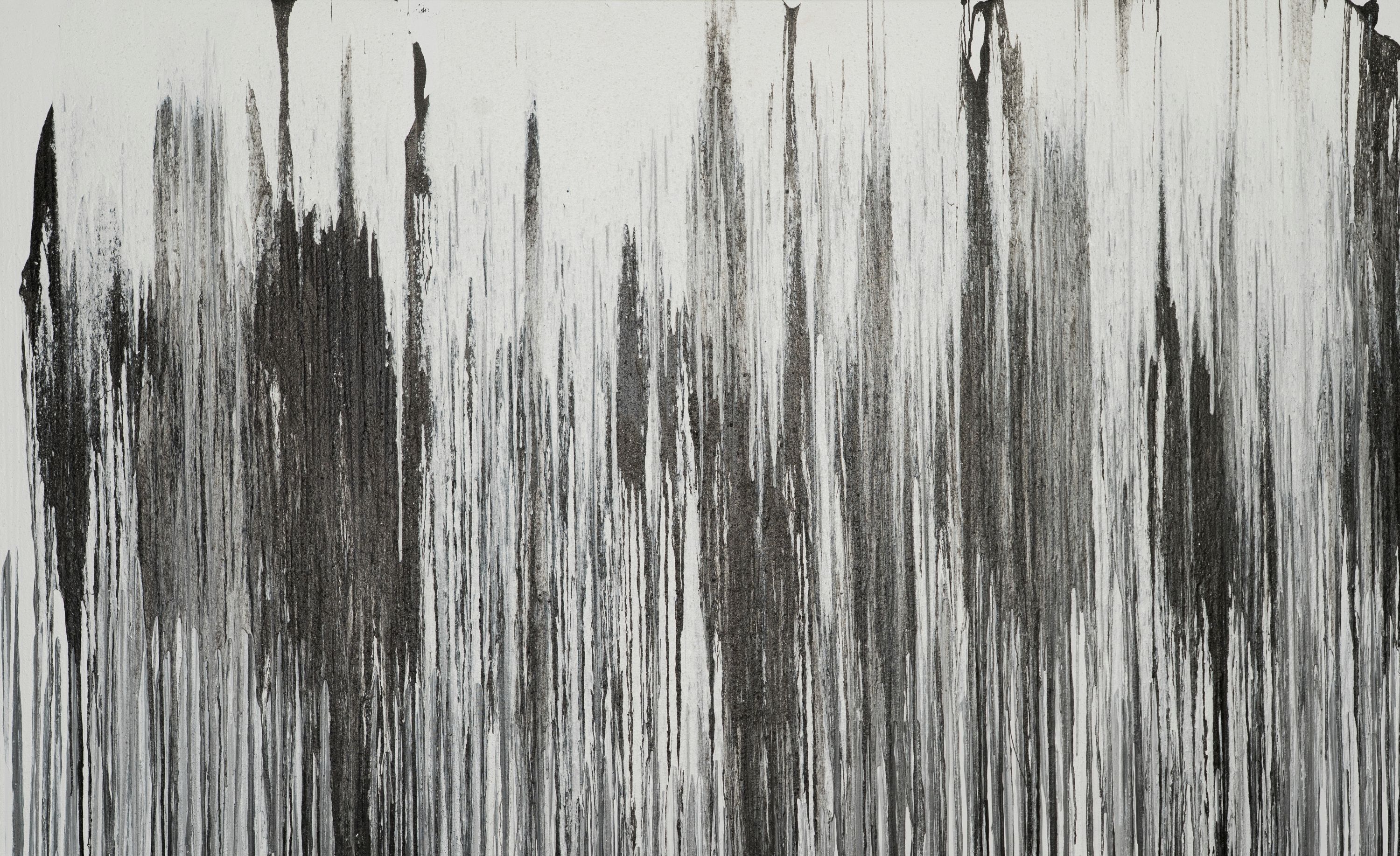At the core of the exhibition are the North Pole paintings, comprising monochrome, expressive canvases that evoke both the power and fragility of the planet's polar and glacial regions. Each painting is characterised by dramatic contrasts of black, white and grey, layers of pigment and ink creating three-dimensional accretions on the surface, a topography of abstraction that alludes to the chasms and crevasses of melting ice.