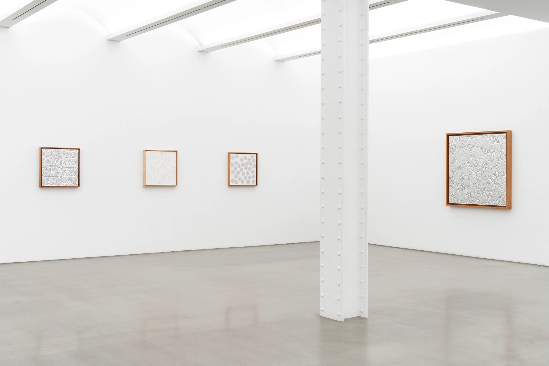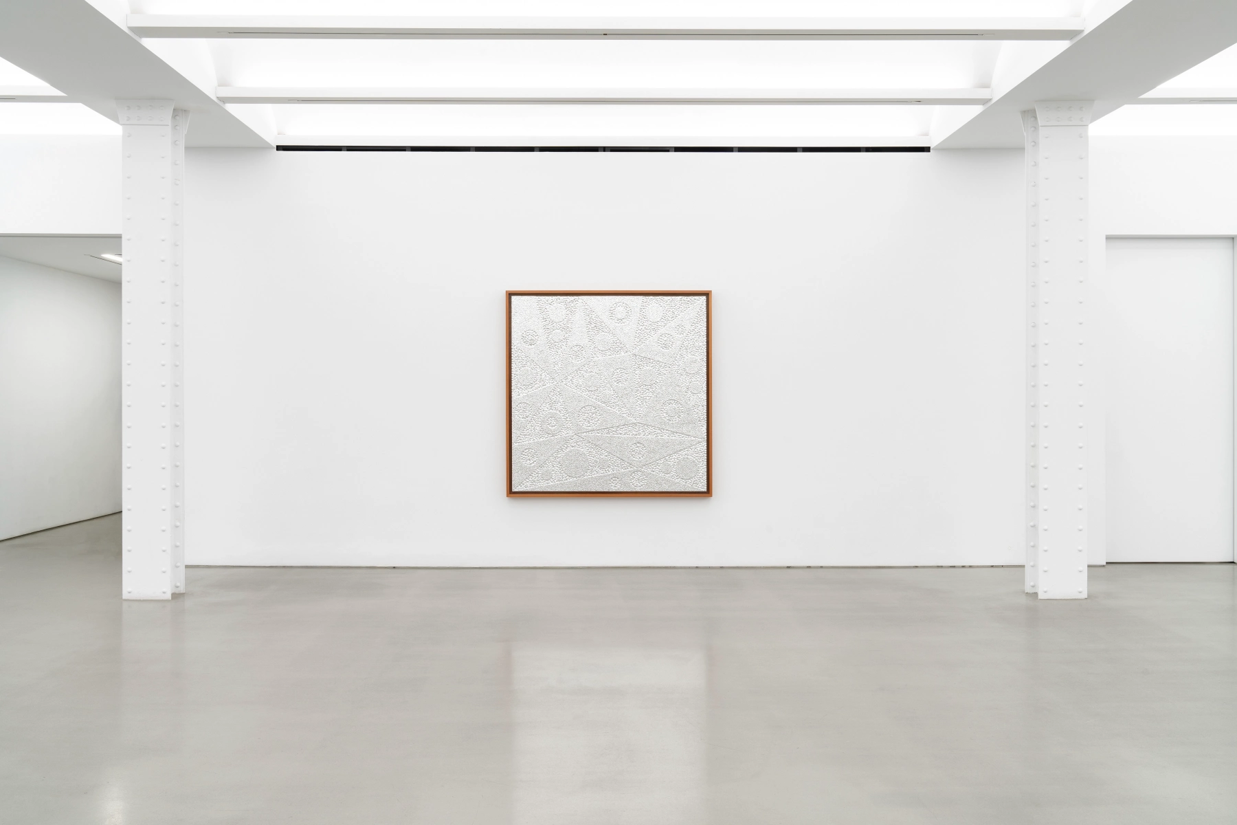 Perrotin presents Repeated Original by Gabriel de la Mora. Throughout his career, the artist has developed an exploration of painting without paint: planes that retain pictorial qualities but dispense with the pigments traditionally associated with the medium. In this pursuit, he has worked with materials taken directly from nature—human hair, butterfly wings, bird feathers, obsidian, andesite—as well as repurposed materials—shoe soles, bicycle inner tubes, glass microscope slides. Far from neutral, these materials carry histories, whether embedded in their DNA, in their chemical composition, or the marks left by use and wear.