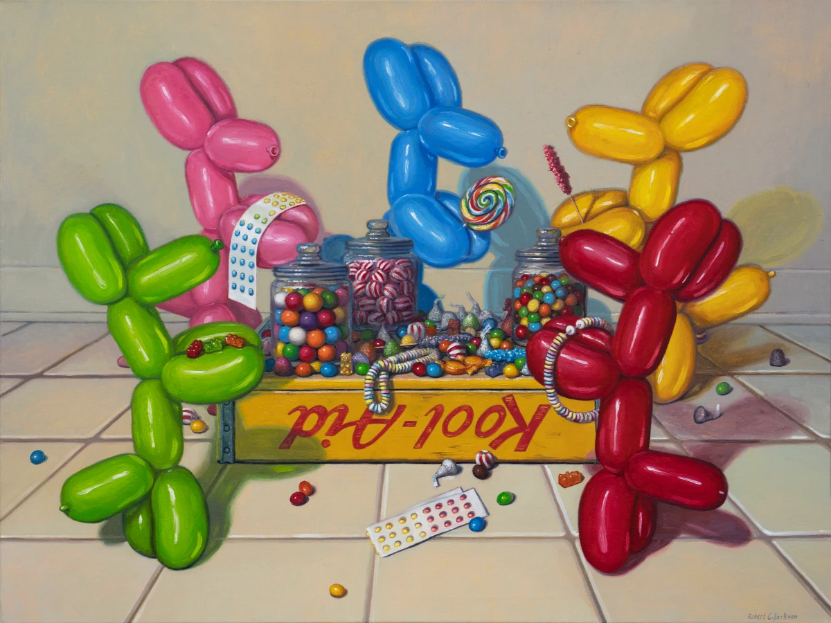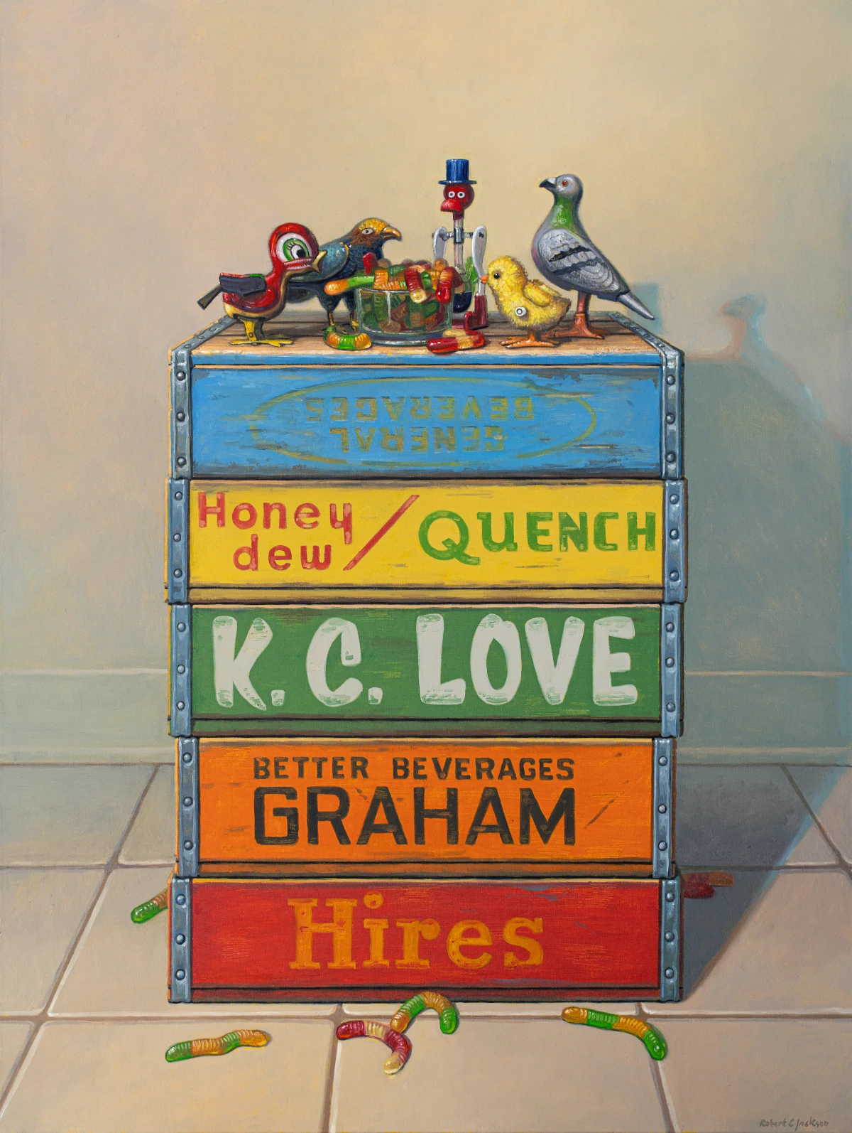 Gallery Henoch presents It’s a Colorful Life, Robert C. Jackson’s eighth solo exhibition with the gallery. His new series of paintings continues to infuse humor into the still life genre, blending nostalgia with comedy. The show coincides with the release of the artist’s book of the same title.