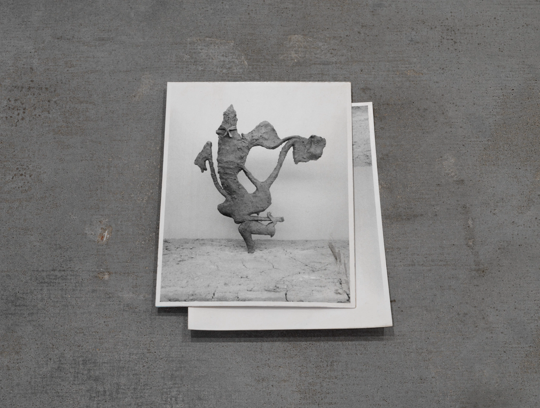 A large sculpture comprised of different elements, including the form of a human head, adds to the sense of having stumbled upon artefacts or objects recently left behind. Alongside the sculpture, Manders has created a ‘newspaper’ containing every word in the English language, arranged at random, and a postcard that offers no clues to its content or imagery. Together, these works reflect Manders’ interest in language and form as fragments - materials that imply meaning but resist interpretation - leaving the installation untethered from any specific time or place.