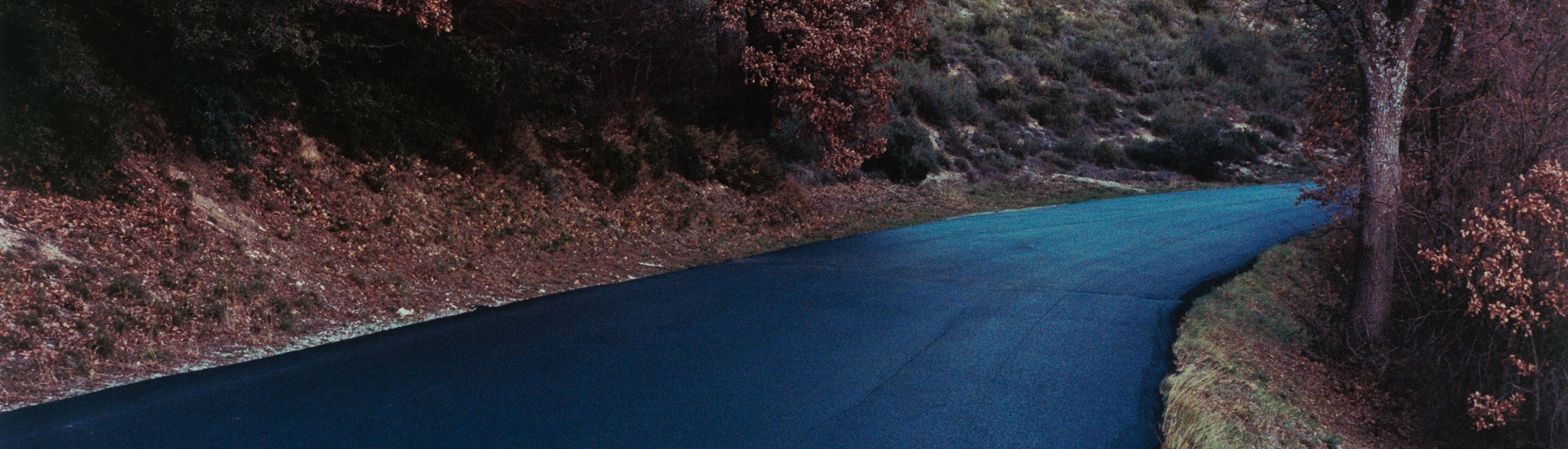 The photographs record fleeting scenes which might go unnoticed. And yet, with Cunnane’s sensitivity to subtle qualities of light and atmosphere, these commonplace subjects yield quiet and glowing intensity. The exhibition’s title refers to one such moment captured by the artist: a stretch of newly tarmacked road, appearing blue in the early evening light.