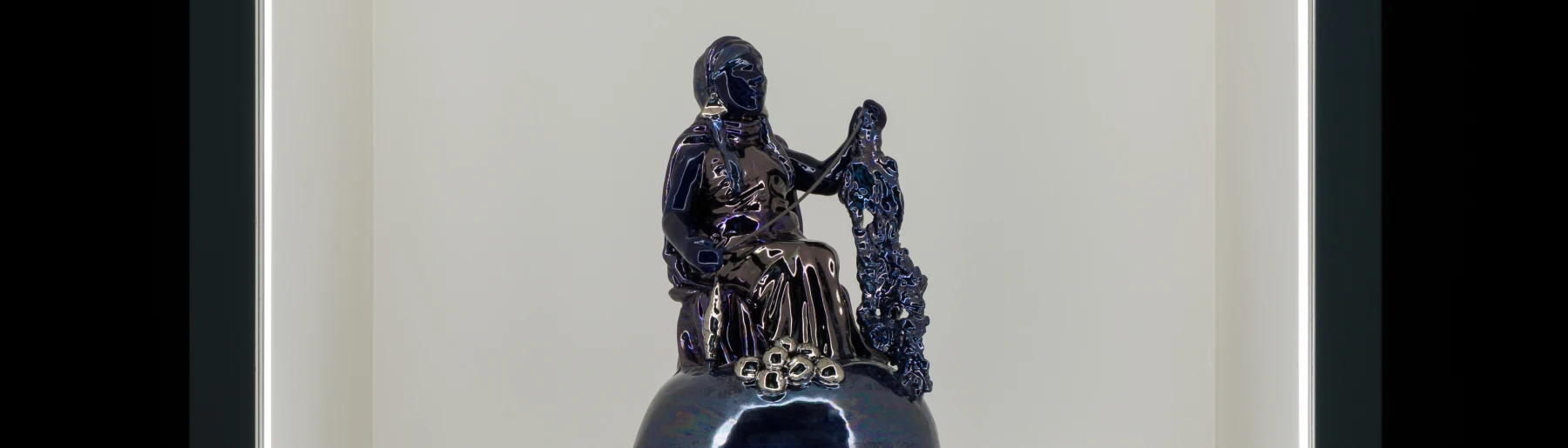 Pippy Houldsworth Gallery presents Imagen país, Hilandera (2025) a new ceramic sculpture by Mapuche artist Seba Calfuqueo. Working across performance, installation, video, and sculpture, Calfuqueo draws on her Mapuche heritage and lived experience as a member of the transgender community to explore the intersections between Indigenous and Western cultures. She reflects critically on the social, cultural, and political dynamics that shape Mapuche life in contemporary Chile, confronting the effects of colonisation, while advocating for the land rights, self-determination and cultural recognition of her people.