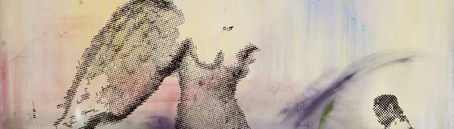 Polke draws the title of this cycle from ancient Greek mythology, referencing the story of Menelaus, the Spartan king whose wife Helen was abducted by the Trojan prince Paris—an event that set in motion the decade-long Trojan War. The dream itself derives from Aeschylus’ Agamemnon, the first play of The Oresteia, in which a seer recounts Menelaus’ painful dream of Helen’s abduction and fleeting visions of her that fuel his desire for revenge against the Trojans. While the title evokes this classical myth, the paintings themselves resist narrative clarity. Through the juxtaposition of amorphous forms and classical and contemporary motifs rendered in his signature raster-dots, Polke conjures a dreamlike visual experience. Only upon close examination do new figures and constellations begin to emerge from the layered surfaces, vanishing just as quickly, like fleeting fragments of a dream.