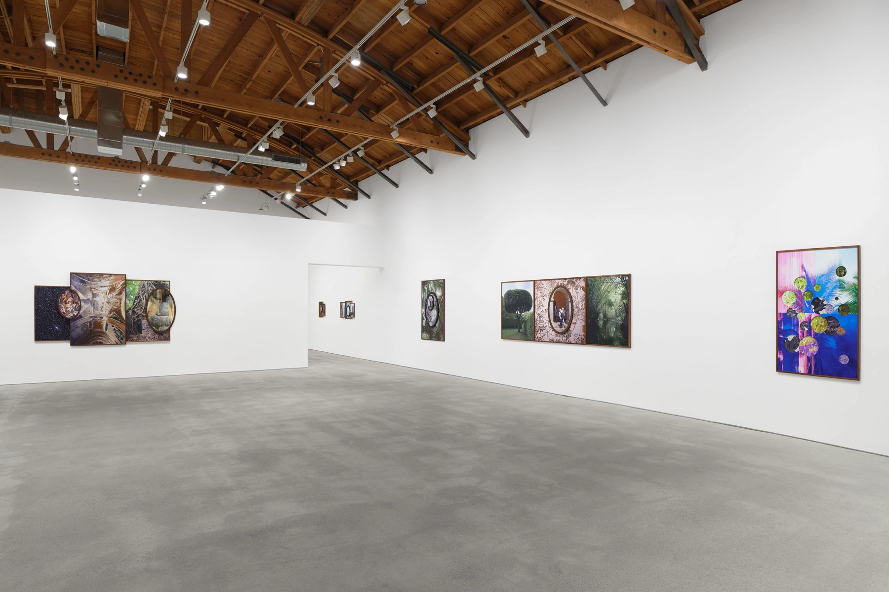 The assemblages in Portals are constructed using both found and bespoke frames. Images are layered, offset, and, in some cases, glitched—sourced from damaged memory cards and rendered in vivid pinks and blues. The result is a series of works defined by exhilarating uncertainty: charged, unexpected juxtapositions that are “not logical but relational” in their affinities.