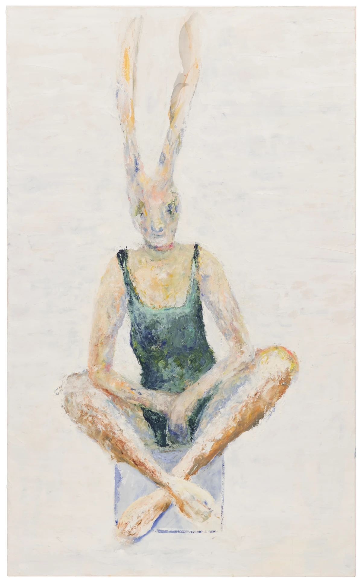 The title initially evokes Favre’s intimate connections with theatre and literature. At the same time, it hints at how she – as a passionate reader – plays with words. A lively, buoyant title, it suggests that she approaches painting with the same playful spirit. Un billet pour quatre pièces (A Ticket for four pieces/rooms) is an invitation to a performance and to dialogue, for no work exists without an audience. By conjuring new Lapine(s) Univers while simultaneously presenting two Petit(s) Théâtre(s) de la Vie – on canvas for the first time – she seeks to reconnect with a sphere in which she lived for nearly twenty years (1982–1999). At the same time, the artist creates the conditions for these figures to encounter other hybrid beings, which unfold within stage-like settings or like stellar constellations.